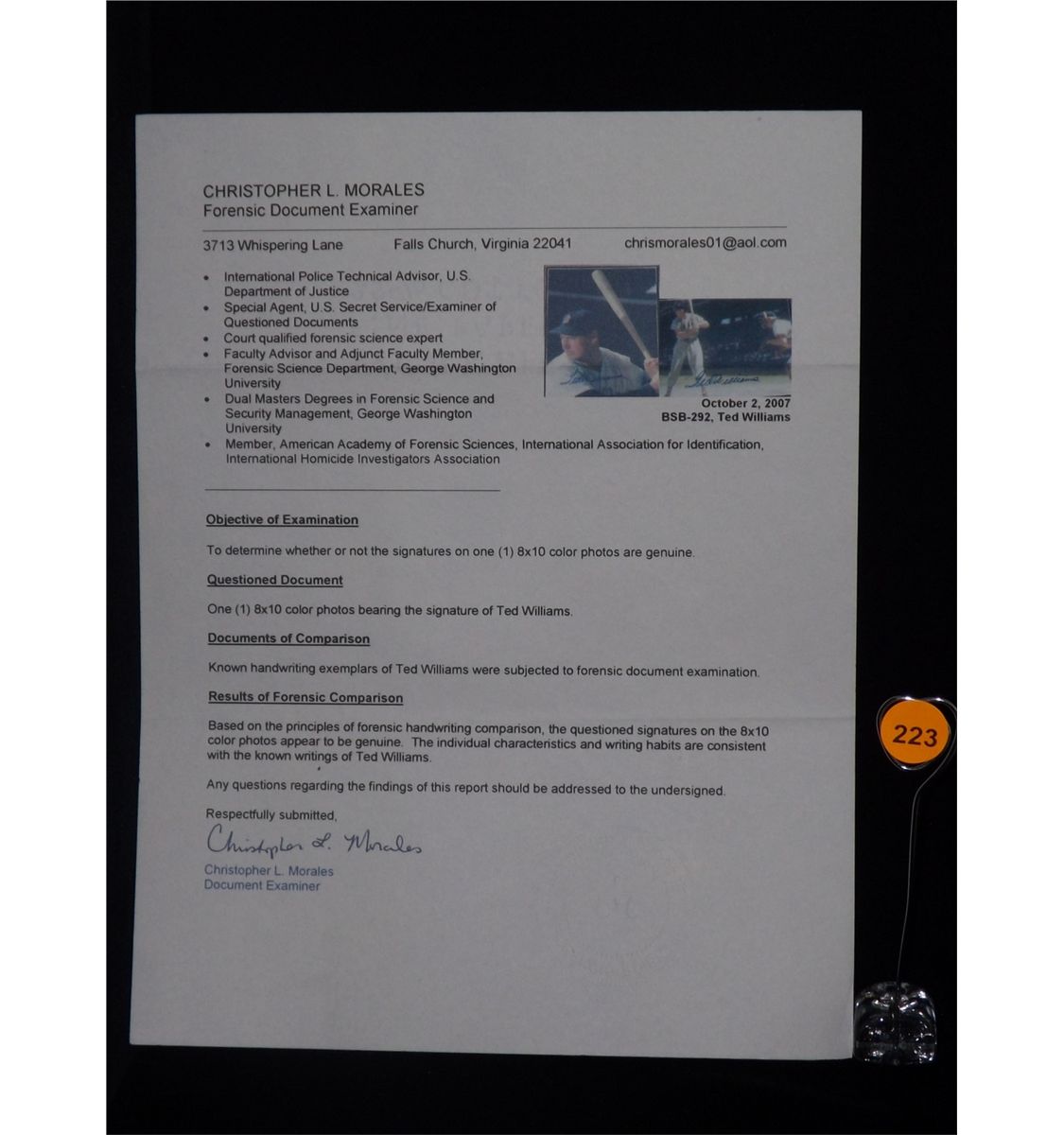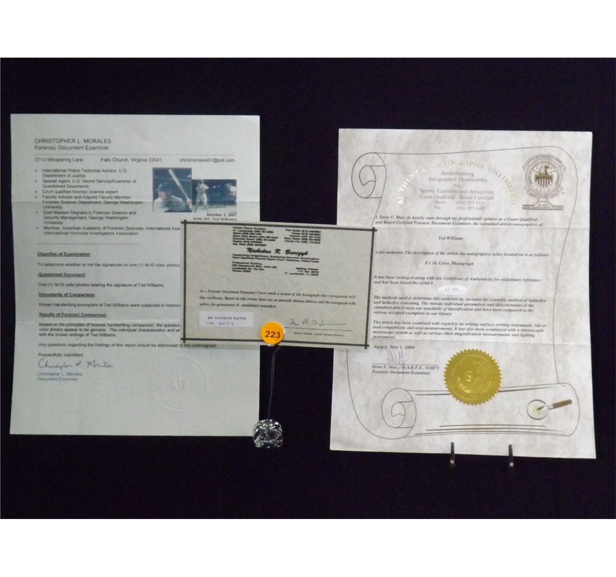 Ted Williams Autographed Photos (2-in-1 Mat and Frame). Two Framed Photos 22x32 - Both Autographed. Appraised or estimated retail value $2000. COAs by Authentic Autographs Unlimited, My Favorite Players and Christopher Morales. All Sales Final. Please see terms and conditions of auction.