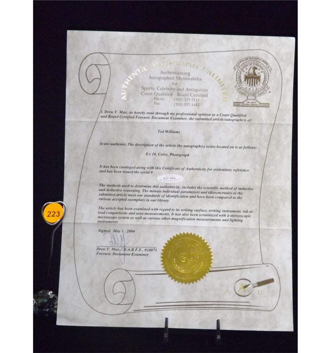 ALL BIDDER WILL HAVE A $500 LIMIT. IF YOU WOULD LIKE YOU LIMIT INCREASE PLEASE CALL (702) 453-5004.All items are sold AS IS. McManus Auctions is not an authenticator. Pictures have been provided to help determine condition and authenticity. The COA's were provided by the cosigner and have not been verified by the auction house. McManus Auctions cannot be held liable now or forever regarding the validity of any COA. We are happy to provide more pictures per request. McManus Auctions is not responsible for the authenticity of these items . NO REFUNDS WILL BE GIVEN FOR ANY REASON.