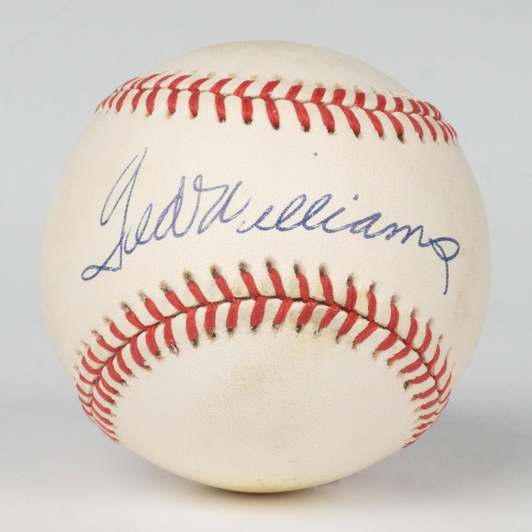 Official American League Baseball signed by Ted Williams. This item comes in a display that measures 5"L x 5"W x 5.25"H. Dimensions: 9" circumference