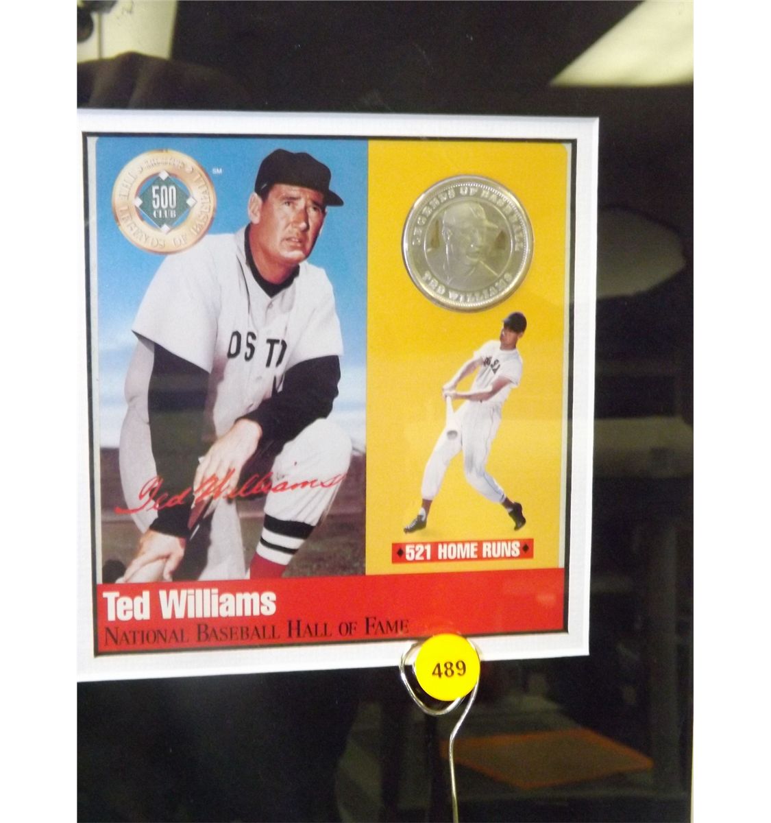 Ted Williams Display with Autographed Upper Deck Triple Crown Picture, and Commemorative "Legends of Baseball" Coin. Appraised or estimated retail value $1200. COA by Christopher Morales. All Sales Final. Please see terms and conditions of auction.