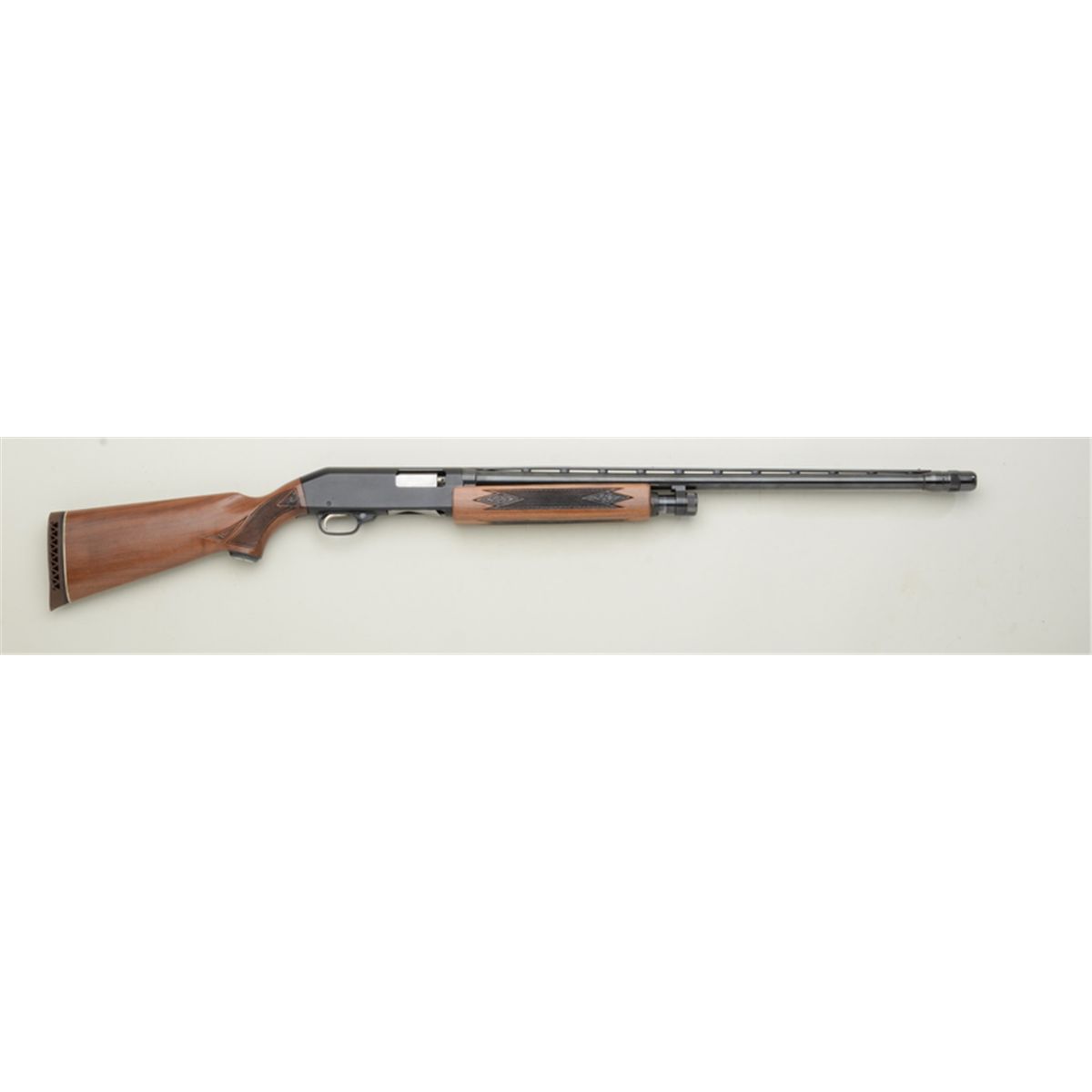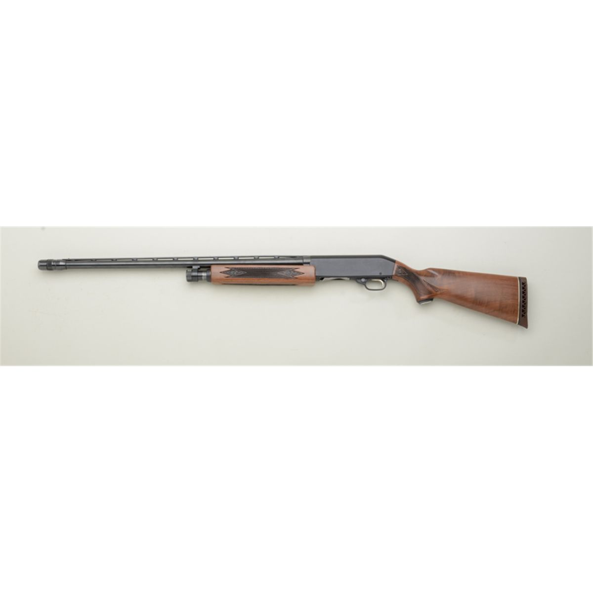 Ted Williams Model 200 pump action shotgun, 12 gauge, 27” ventilated rib barrel including adjustable muzzle choke, jeweled bolt, checkered wood stocks, #95695. This gun is in overall fine to excellent condition showingthe majority of its original finish, fine bore, action, markings and wood. Est.: $100-$200.
