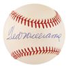 Official Rawlings American League (Brown) baseball signed in blue ballpoint on the sweet spot, "Ted Williams." In fine condition.