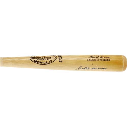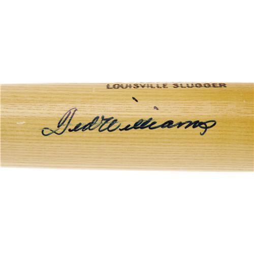 <B>Ted Williams Signed Bat.</B></I> The ultimate Williams signed lumber is a perfect replica of Williams' signature model Hillerich & Bradsby W215 bearing his crisp 10/10 blue sharpie signature. Williams signed bats only continue to rise in value, and what venue for his autograph could possibly be more appropriate? <I>LOA from PSA/DNA.</B></I> <BR><BR><B>Important notice:</B> Heritage usually auctions material at the rate of 200-250 lots per hour. On some occasions eBay Live bid software or the Internet may not be able to keep up with the pace of the auction. We recommend placing a realistic absentee bid now as insurance to avoid disappointment. Occasionally the auctioneer may eliminate or reject an eBay Live bid, and the auctioneer may also reopen a lot after the close of the eBay live bidding (usually because we missed an audience bid), and may reject your bid even if it shows you as the winning bidder. By bidding via eBay Live, you agree that Heritage may award the lot to another bidder at its sole discretion under the circumstances described above or any other reasonable circumstances. Since eBay bids are not shown to us until we open the lot on the floor, we treat those bids just like floor bids. In most cases the floor responds before the eBay bid is presented to us, due to Internet lag time, so for consistency we have made it a policy that floor bids are always considered first over tie eBay live bids. Also please note that all Heritage lots purchased through eBay Live carry a 22.5% Buyer's Premium. Please make sure you read the Terms and Conditions before you bid. This lot is being auctioned in conjunction with a live floor auction by Heritage Galleries & Auctioneers. All final auction and invoice information will be supplied by Heritage Galleries & Auctioneers, and all other information should be considered preliminary. Lot:19121 <BR><BR><B>Winning Notification and Billing:</B> After the FINAL session in this auction is complete, Heritage will send e-mail and snail mail invoices. This process normally takes several days. All final auction and invoice information will be supplied by Heritage Galleries & Auctioneers, and all other information should be considered preliminary. <BR><BR>This auction will be conducted on a live auction floor and over the Internet through eBay Live. If you choose to place an absentee bid, please take a moment to <font color='#0000ff'><u><a href='http://pages.ebay.com/liveauctions/help/before/laabsentee.html'>learn how eBay Live absentee bidding works</a></u></font><font color='#000000'>