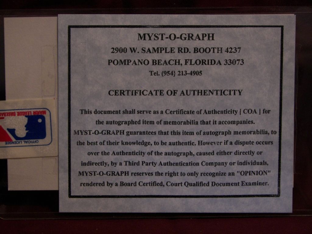 (7845) Ted Williams Signed Cut, Autograph, Certified M O G, 3" X 5"