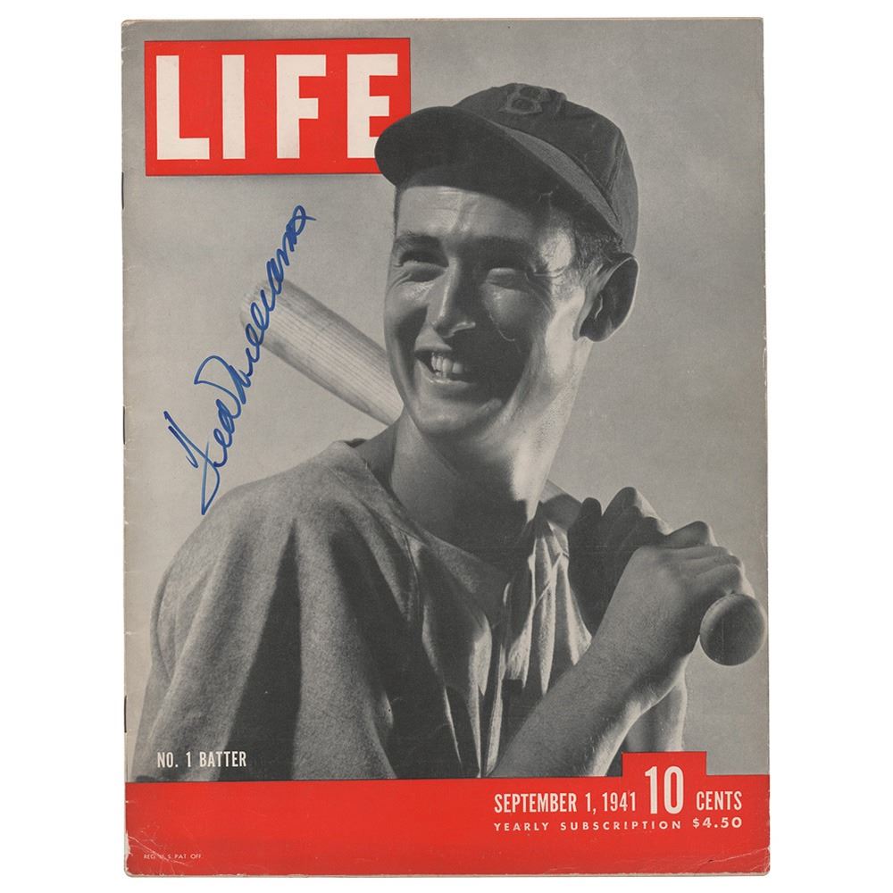 Complete issue of Life Magazine from September 1, 1941, 10.5 x 14, 80 pages, signed on the front cover in blue felt tip by Ted Williams. In fine condition, with some light corner creasing.