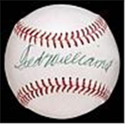 Reach OAL Cronin baseball single-signed in blue ink on the sweet spot by HOF slugger Ted Williams. Ball is lightly toned, League/President's stamp and manufacturer's stamp are light, signature grades an 8 to 9. Accompanied by a LOA from JSA.