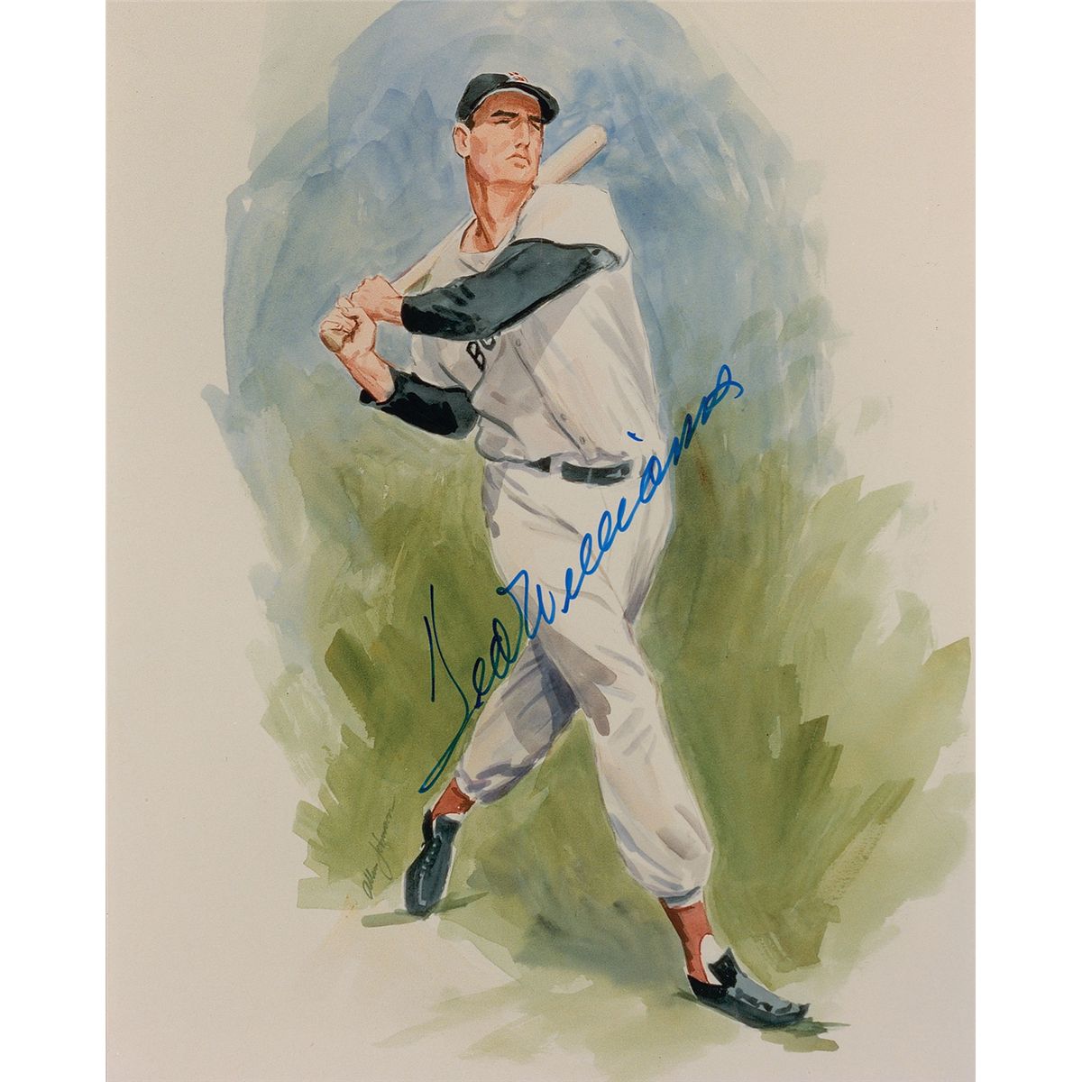 Two color satin-finish 8 x 10 photos of Ted Williams and Joe DiMaggio, each signed by the player pictured. In fine condition.