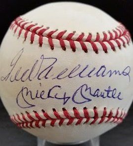 Ted Williams and Mickey Mantle Signed Official Bart Giamatti National League Baseball, this ball does have light shellack.