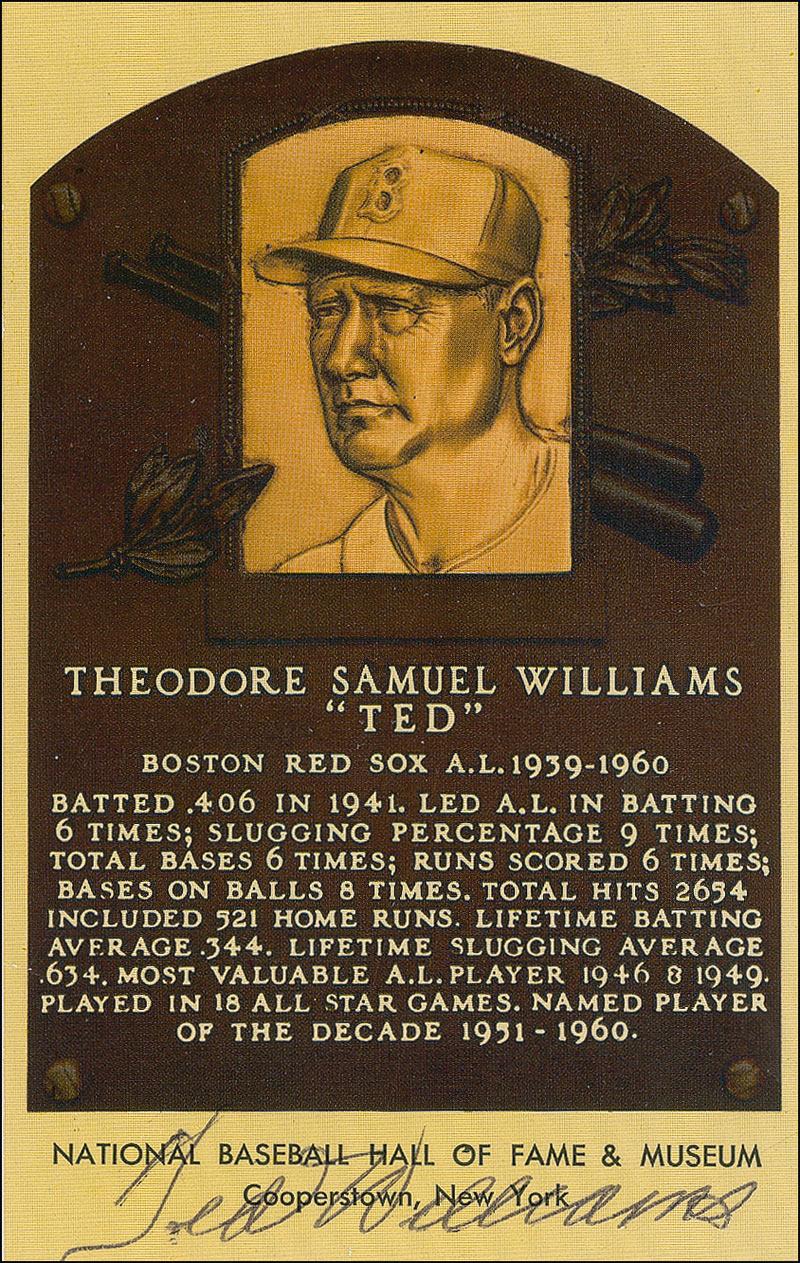 Gold Hall of Fame plaque card signed along the bottom in ballpoint. In fine condition, with a couple of light bends.