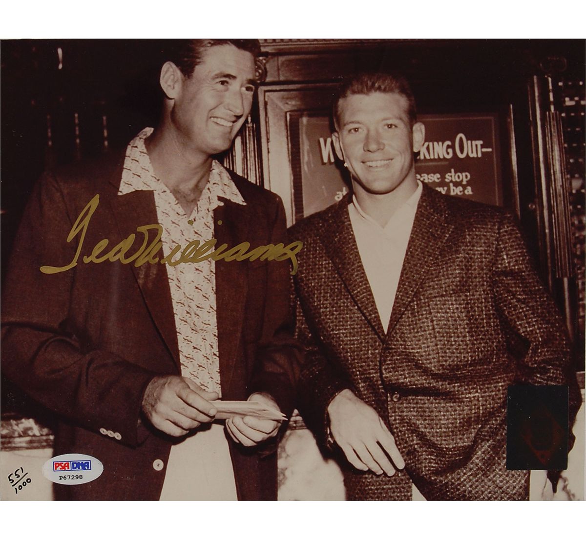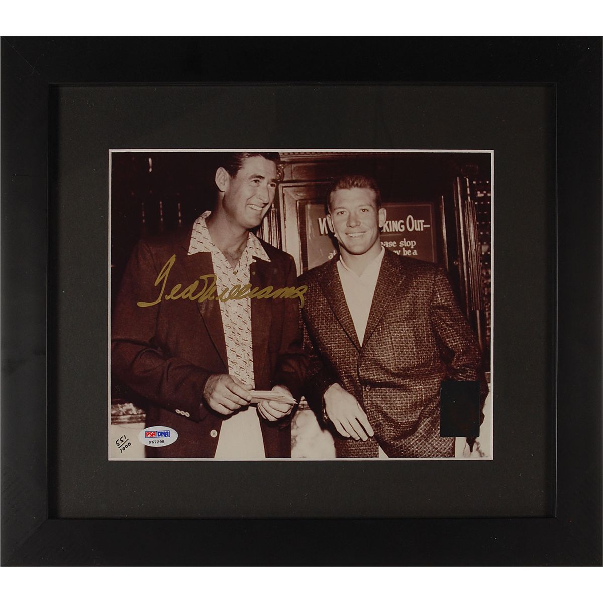 Glossy 9.5 x 7.5 limited edition photo of Williams with Mickey Mantle, numbered 551/1000, signed in gold ink by Williams. Matted and framed to an overall size of 15 x 13. In fine condition, with PSA/DNA and Green Diamond authentication labels affixed to lower corners. Accompanied by a certificate of authenticity from Green Diamond and a full letter of authenticity from PSA/DNA.