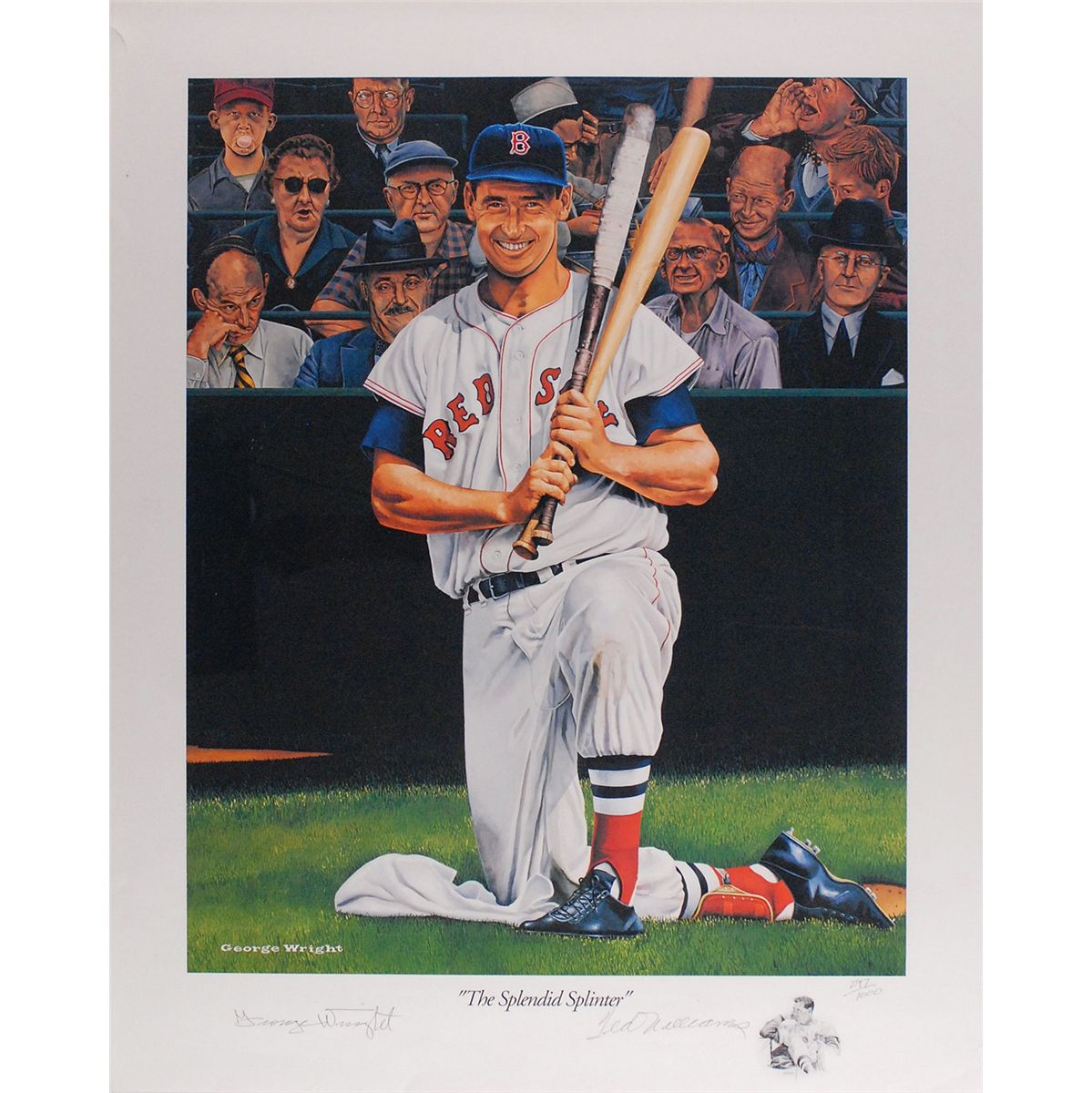 Color limited edition 22 x 28 print entitled ‘The Splendid Splinter,’ numbered 297/1000, signed in the lower border in pencil by Williams and by the artist, George Wright. A tear to the upper left corner and scattered edge creasing, otherwise fine condition. Rolled.