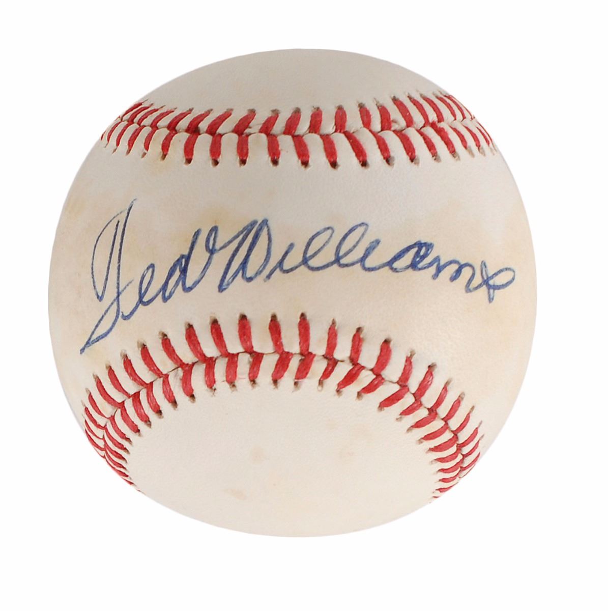 Official Rawlings National League (Feeney) baseball signed in blue ballpoint on the sweet spot. In very good condition, with irregular toning.