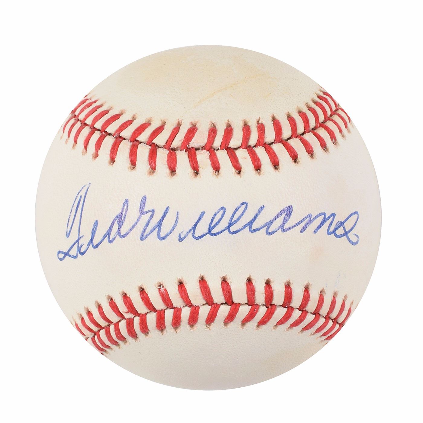 Official Rawlings American League (Brown) baseball signed in blue ballpoint on the sweet spot by Williams. In fine condition, with light toning to one panel.