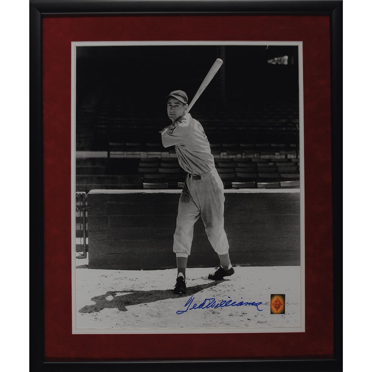Glossy 16 x 20 photo of Williams in his rookie season, signed in blue felt tip. Matted and framed to an overall size of 21.75 x 25.5. In fine condition, with a Green Diamond Sports authentication label affixed to the photo; accompanied by a certificate of authenticity from Green Diamond Sports. Oversized.