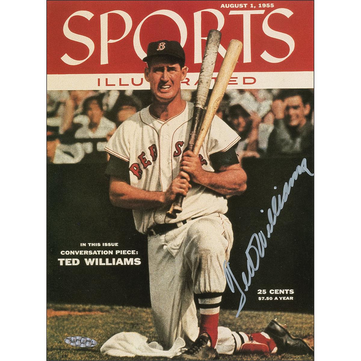 Color 8.25 x 11 heavy cardstock image of the August 1, 1955, cover of Sports Illustrated, boldly signed in silver felt tip. In fine condition, with a tiny upper right corner bend and an Upper Deck authentication label affixed to the photo. Accompanied by an Upper Deck presentation folder.