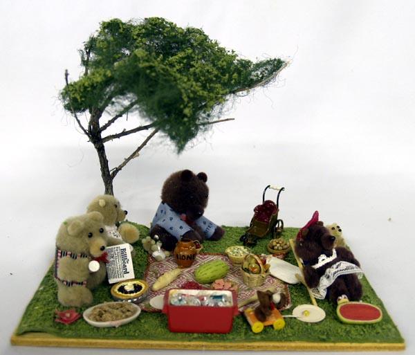Teddy Bear's Picnic Miniature Display. Plexiglass cover, measures 8''x10.25''x8.25''. SHI $35.