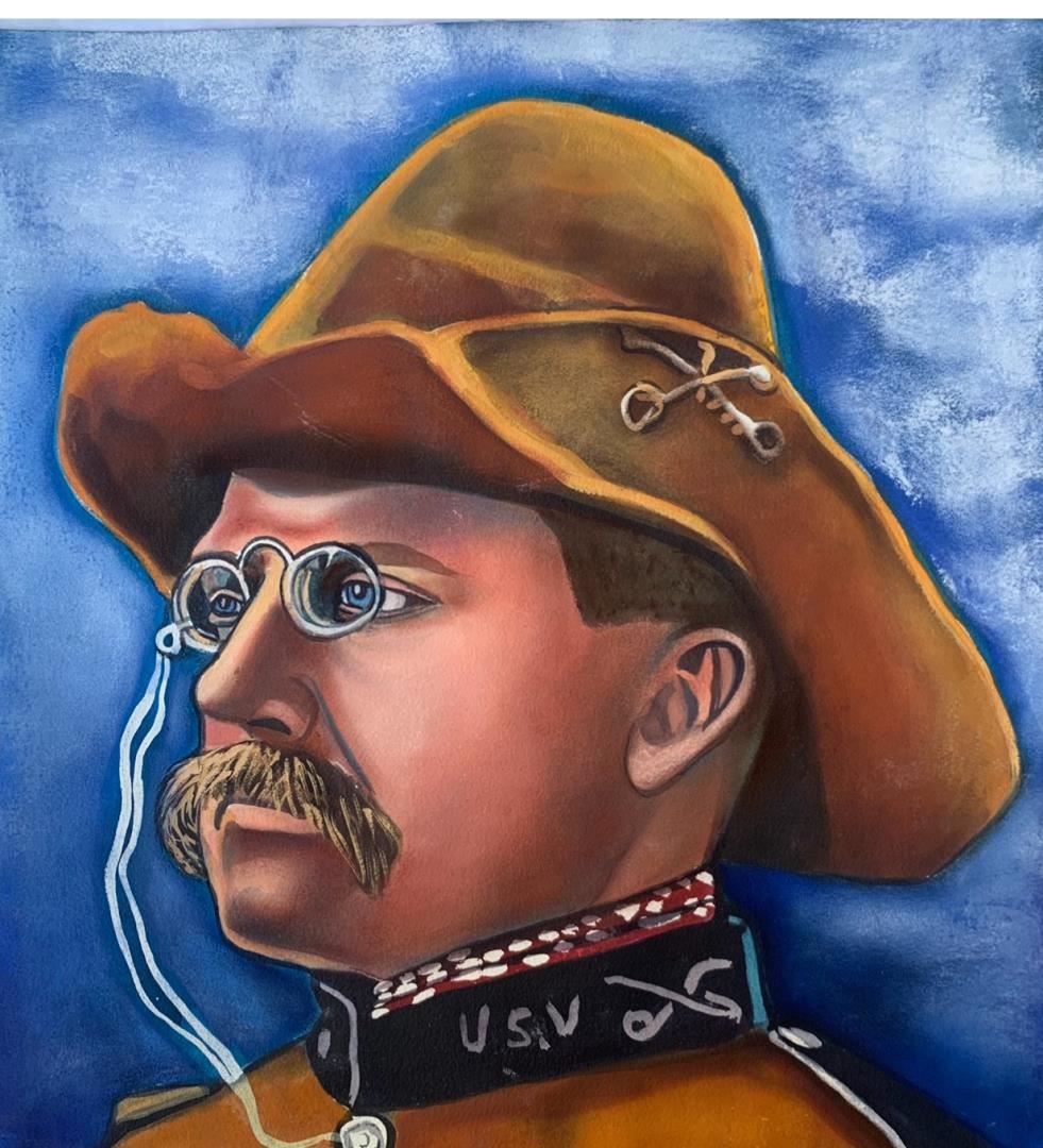 A pastel & watercolor portrait of the great US President Teddy Roosevelt, 18x17" on deckled fine art paper, by Anonymous
