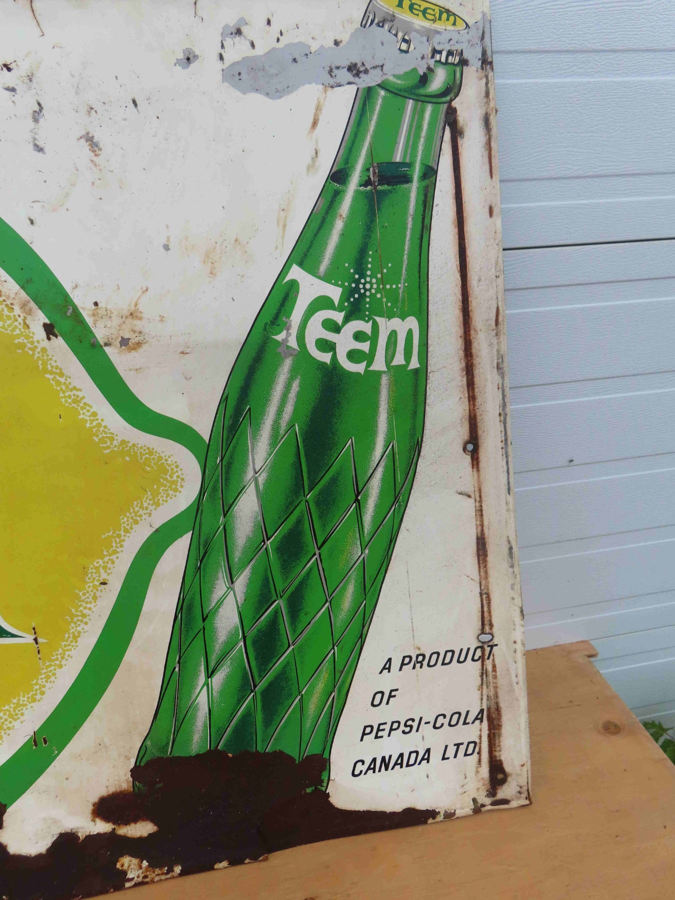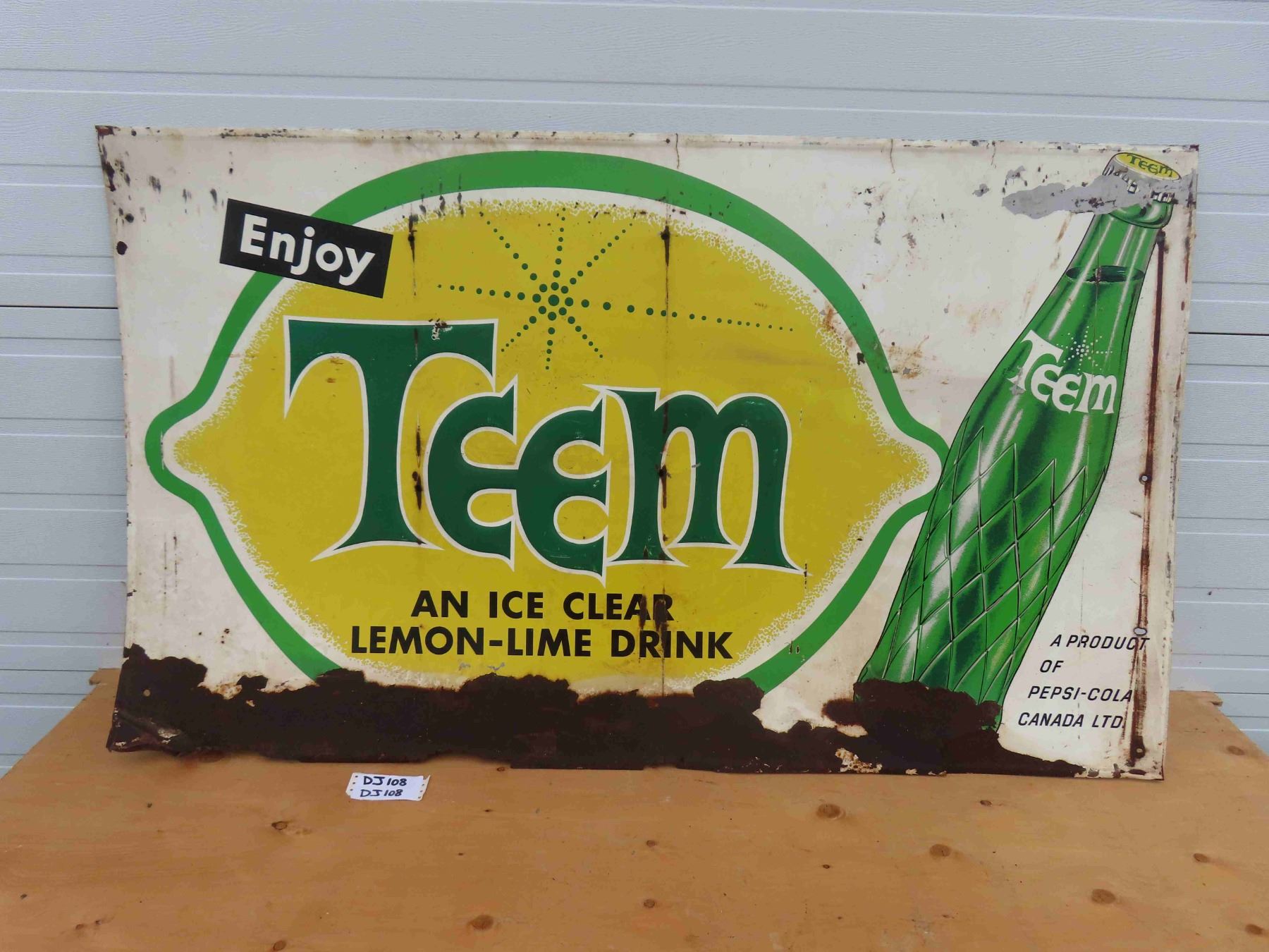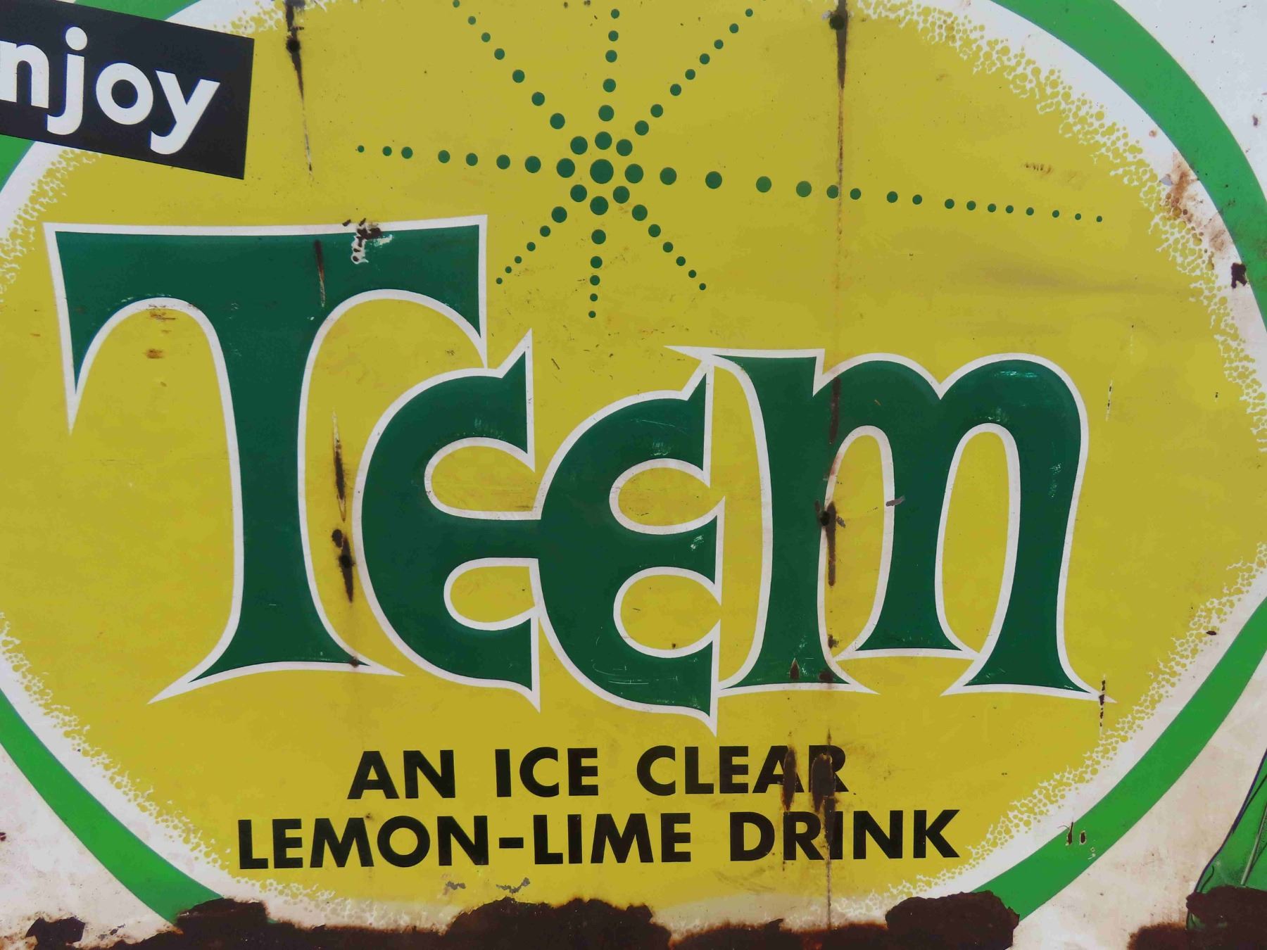 Teem Lemon Lime Drink Tin Embossed Sign with Bottle 59'' x 35'' 1963?