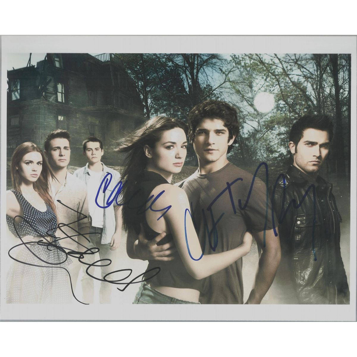 Cast signed color 8x10 by all four main stars: Tyler Posey, Crystal Reed, Holland Roden and Colton Haynes