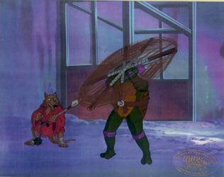 These are original hand-painted production cels for the Teenage Mutant Ninja cartoon. They are all in nice black lacquer frames -ready to hang!