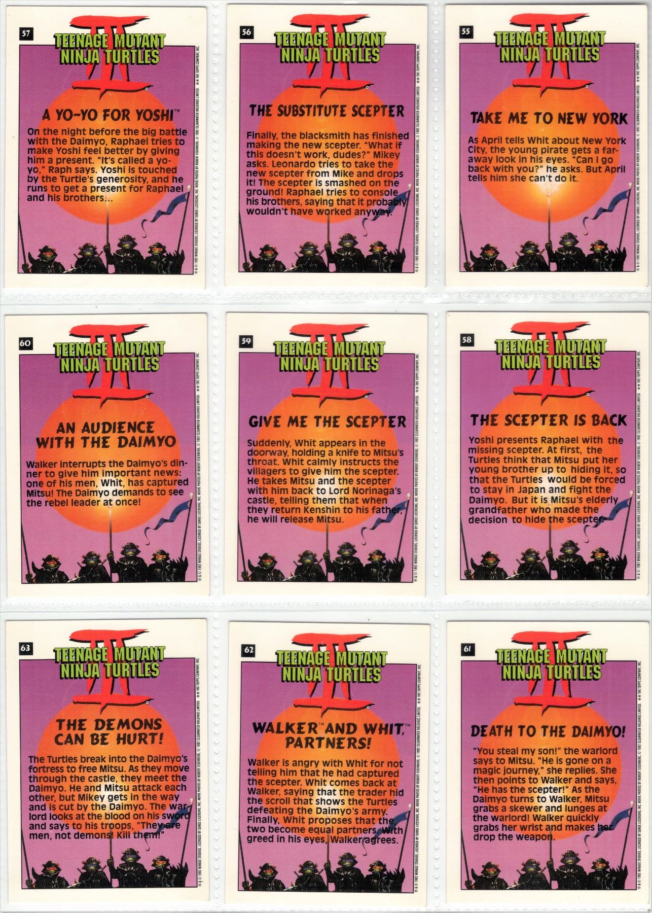 Teenage Mutant Ninja Turtles III 1992 Topps Trading Cards - All 88 Collectors Cards Plus Some Sickers