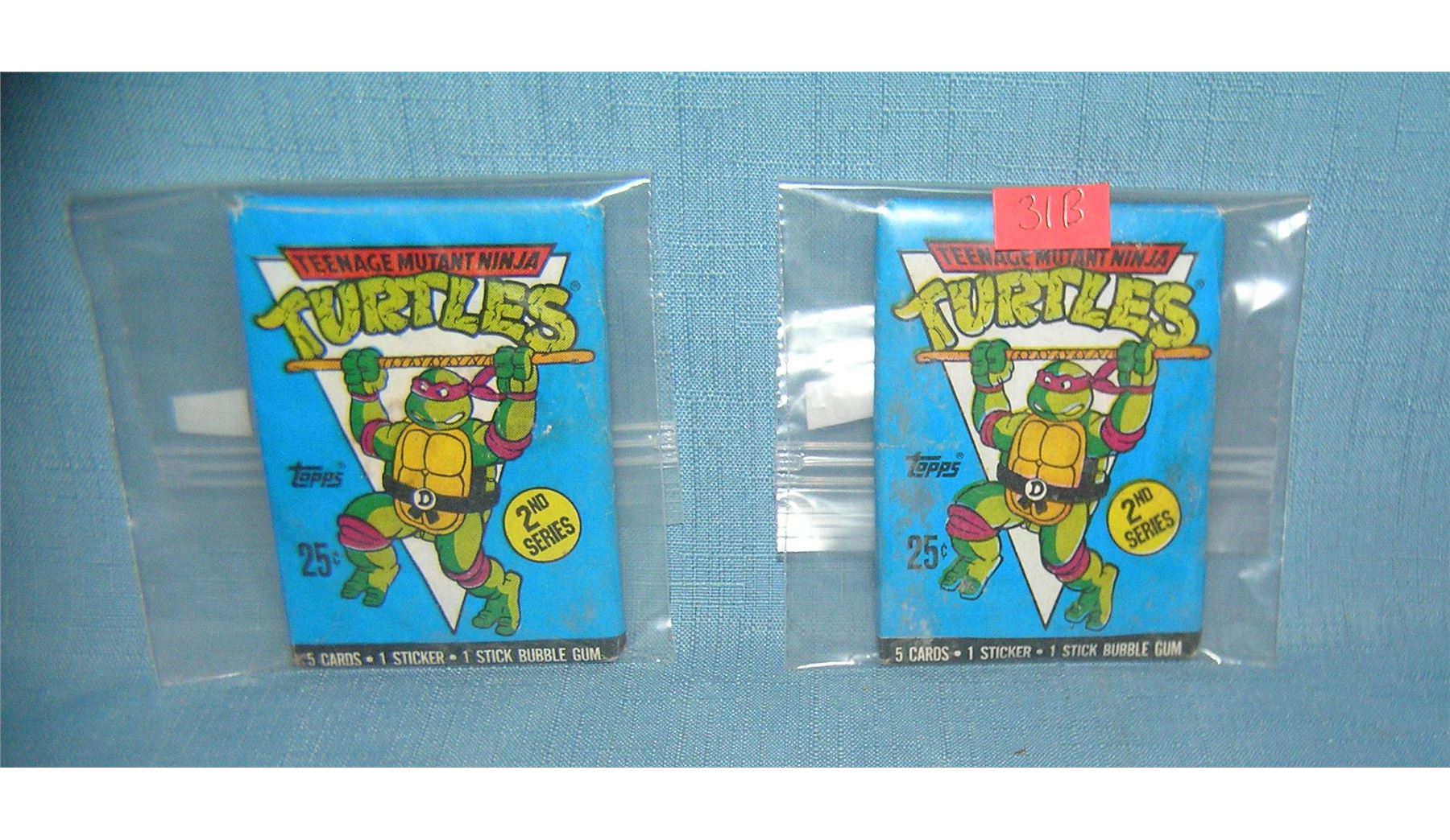 Pair of Teenage Mutant Ninja turtles unopened wax pack card packs est. value $20.00-$24.00