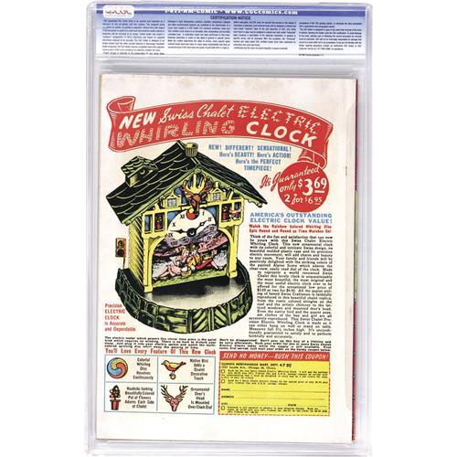48C. COMICS – Comic books sold referencing a third-party grading service are sold "as is" without any express or implied warranty. Certain warranties may be available from the grading services and the Bidder is referred to them for further details: Comics Guaranty Corporation (CGC), P.O. Box 4738, Sarasota, FL 34230. Subject to sections 57 and 58, bidders who intend to challenge authenticity or provenance of a lot must notify Auctioneer in writing within thirty (30) days of the Auction's conclusion. Auctioneer's maximum liability shall not exceed the high bid on that lot, which bid shall be deemed for all purposes the value of the lot. In the event Auctioneer cannot deliver the lot or subsequently it is established that the lot lacks title, provenance, authenticity, or other transfer or condition issue is claimed, Auctioneer's liability shall be limited to recission of sale and refund of purchase price. After one year has elapsed, Auctioneer's maximum liability shall be limited to any commissions and fees Auctioneer earned on that lot.