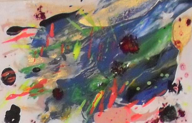 Find the camouflaged bird in "Teheinzz Triverset's" acrylics painting titled 'Blue Bird in Flight', original art on wood board about 4 high x 6 inches... great for decorating your wall or even use on your desk !