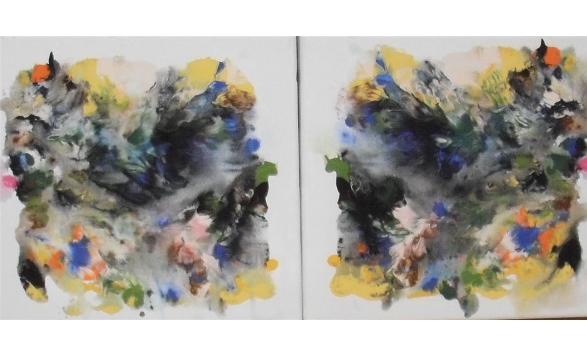 "Teheinzz Triverset Sun Storn Twins" original actual art painting 10 high x 20 inches on 2 canvas with false frame in the back by Teheinzz Triverset for your home now !!!