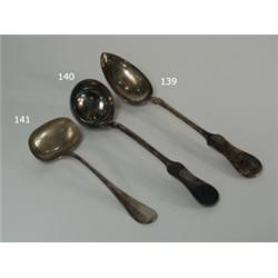 Ezüst, 120 g. Hegedutok fazonú nyélen kerek, mély merítovel. Jelzett: magyar, XIX. sz. vége
