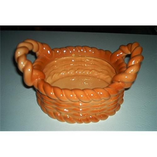 This is a lovely, higly glazed, Teleflora ceremic basket. Measurements are: 9 inches from bottom of base to the top of the handle; without the handle it measures 3.5 inches tall. The base measures 7 inches long and 6 inches wide. The depth of the basket is 3 inches. Beautiful basket ot put real flowers in or to make a lovely flower arrangement. Excellent Condition.
