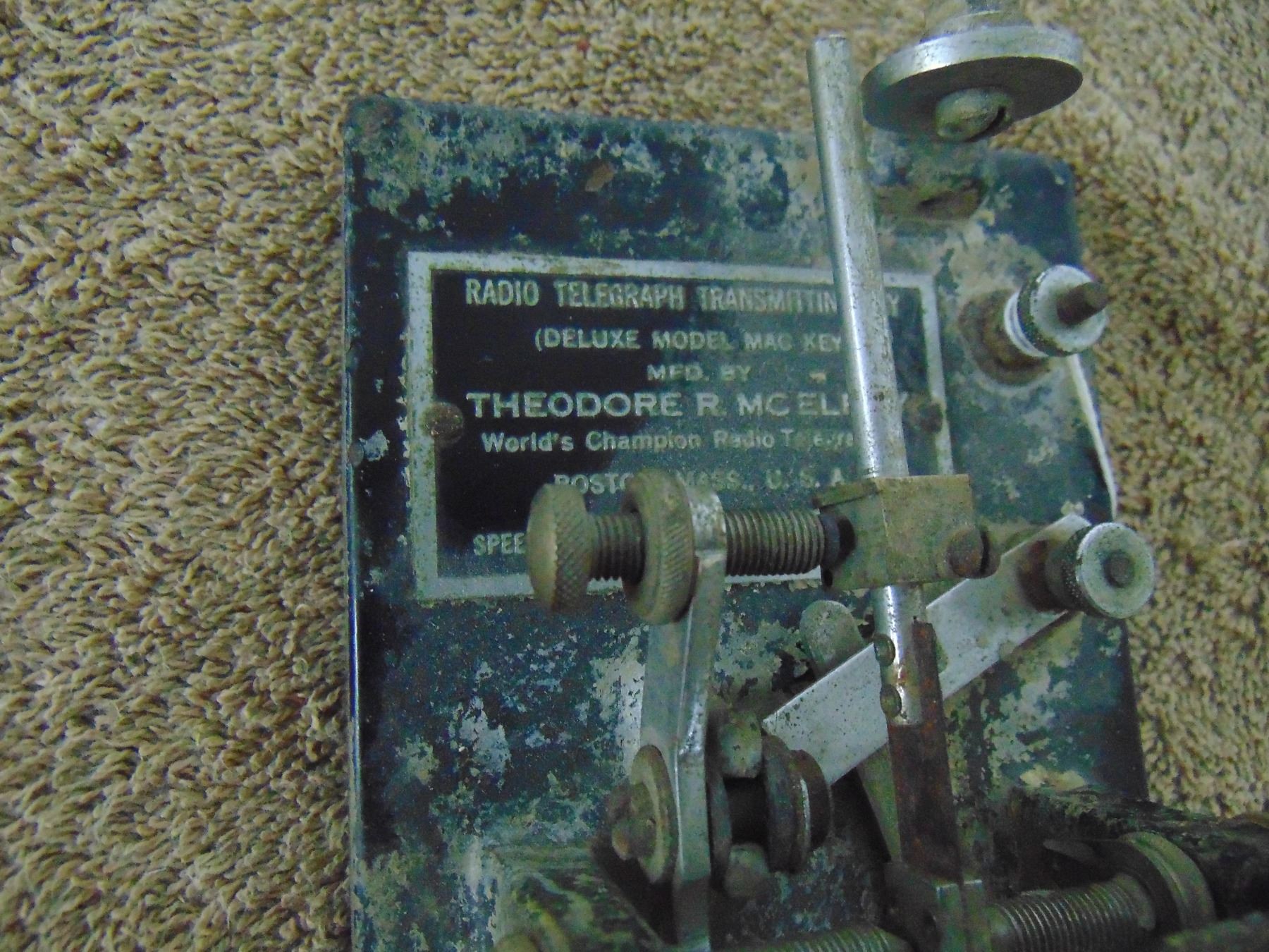 Two vintage telegraph keyers; one is McElroy, one is early Vibroplex