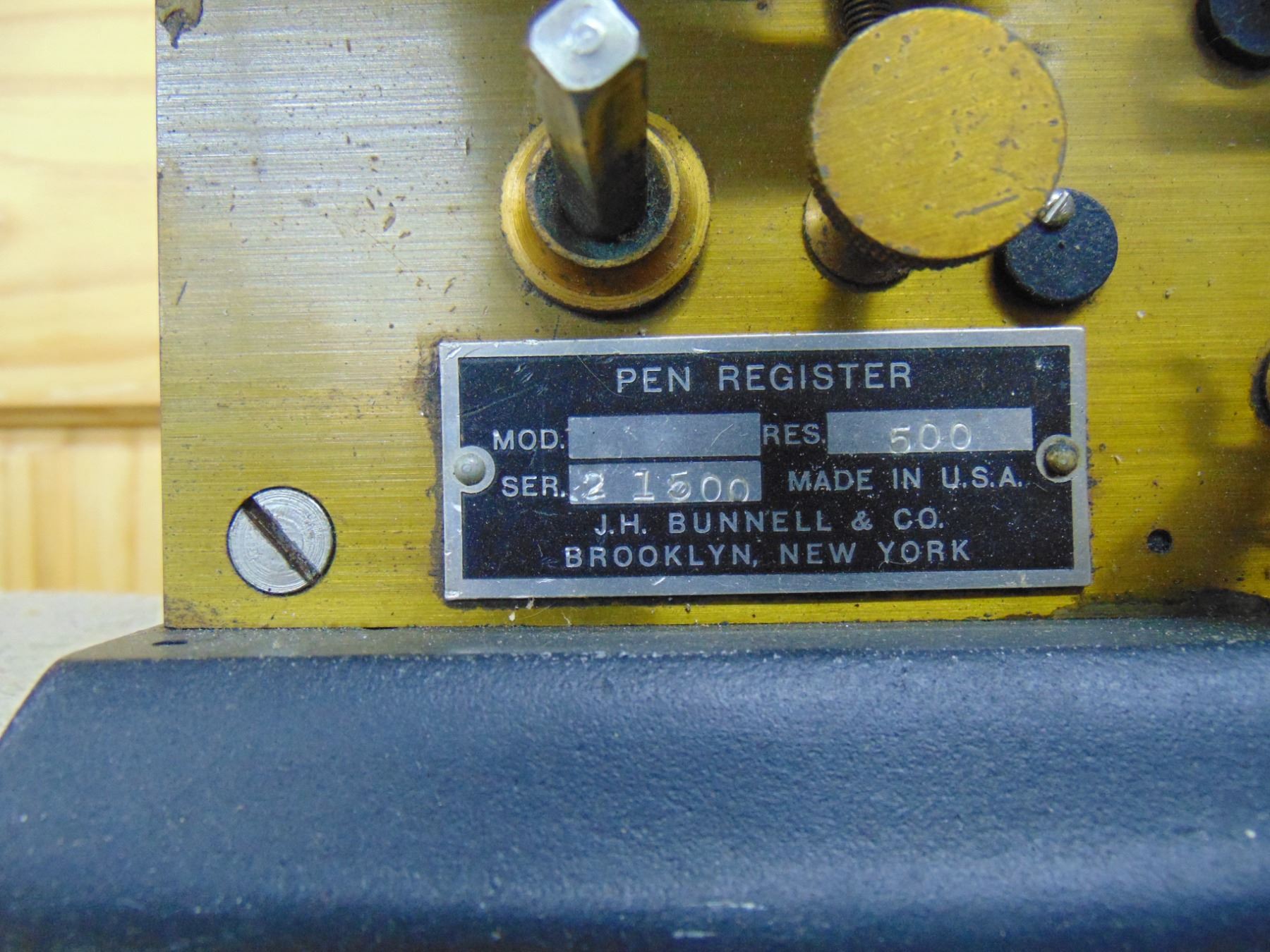 J.H. Bunnell pen register; brass construction; very nice; no wind-up key