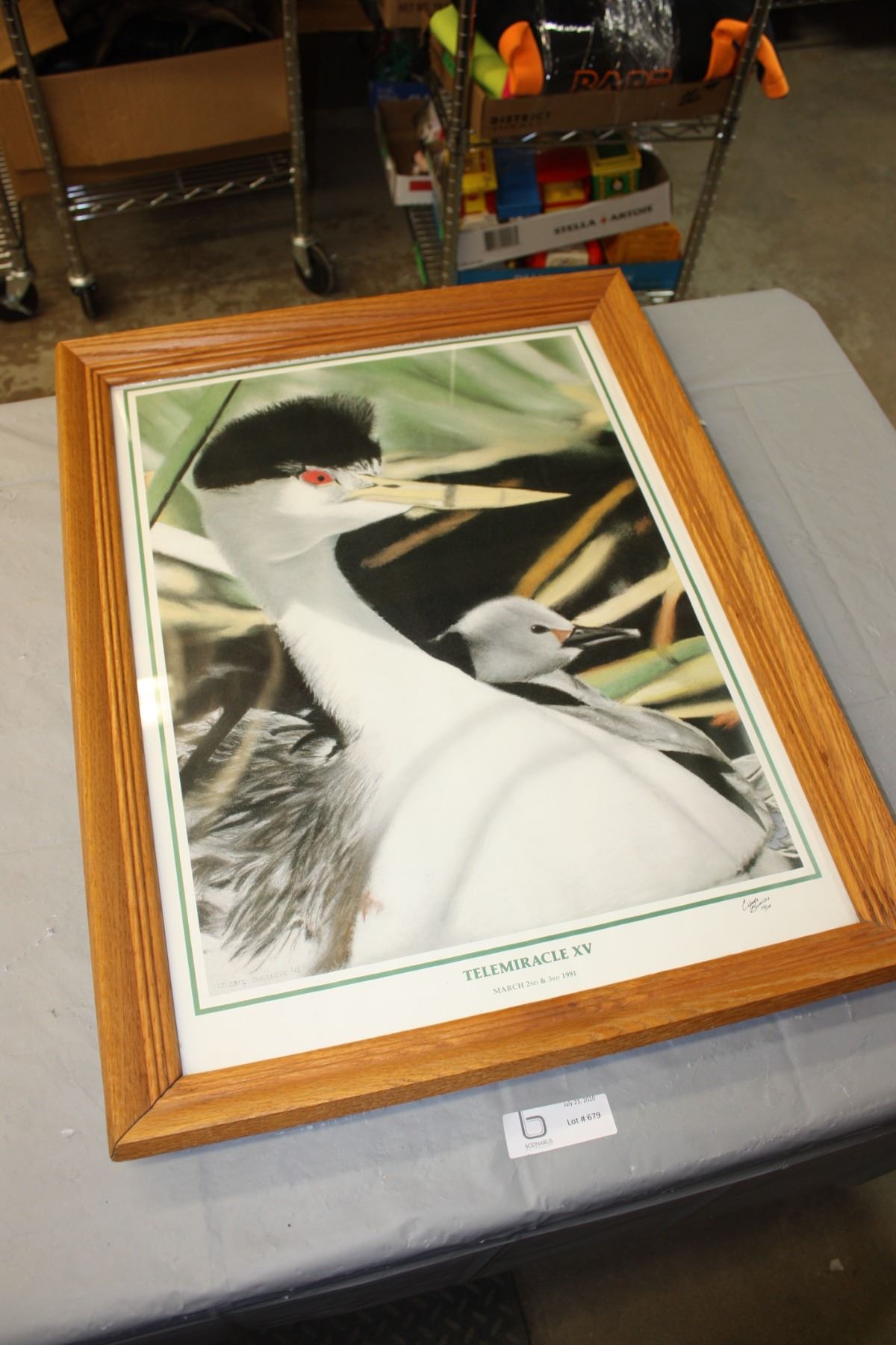 Telemiracle XV March 2-3 1991 Framed Blue Heron and Chick Print 16" by 24" By Celeste Bussiere
