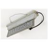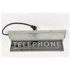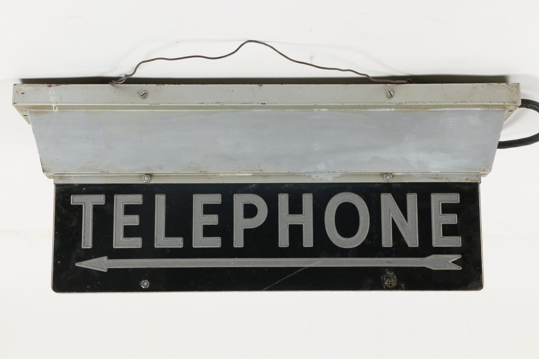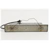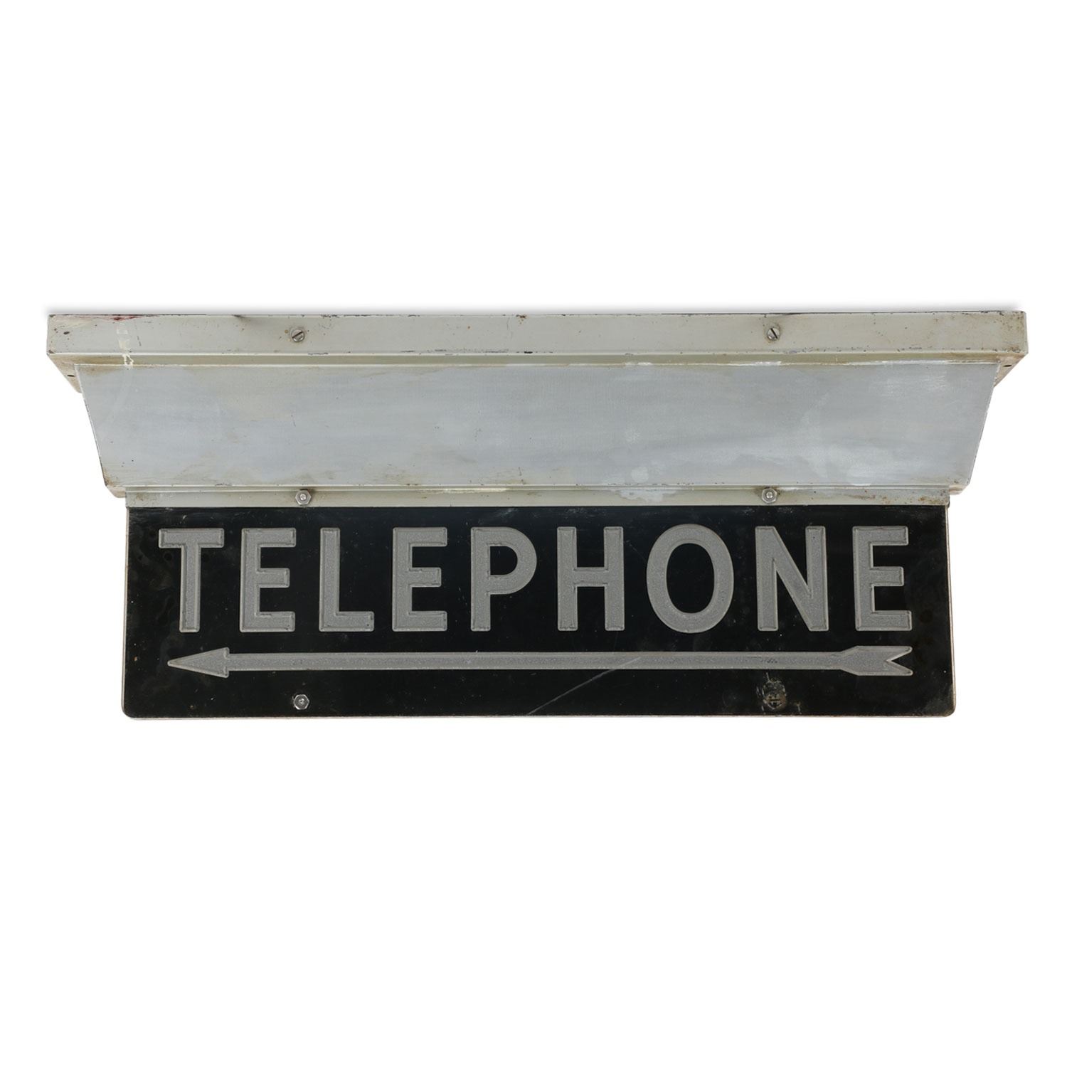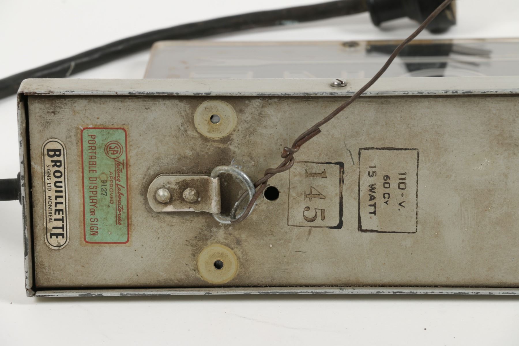 Circa 1950. 2-sided. Flush-mount. Etched acrylic panel with aluminum hardware. 20.5" x 8" x 3.5". Scuffs. Soil and wear to painted steel fixture. $100-200.