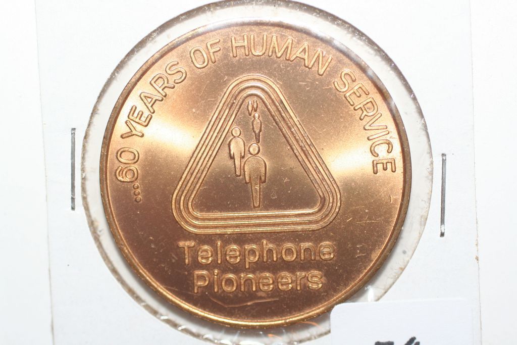 This lot is a telephone pioneers token; pioneer day october 28, 1971