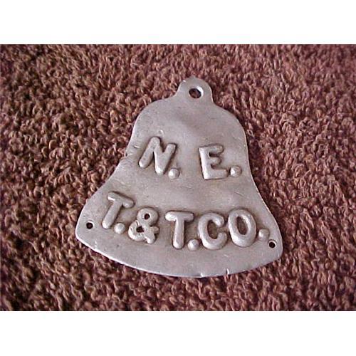 Telephone Tag,embossed -N.E.T.&T. Co. in shape of a bell; 2" X 2" (c)1900's for mounting or a chain. Alum.