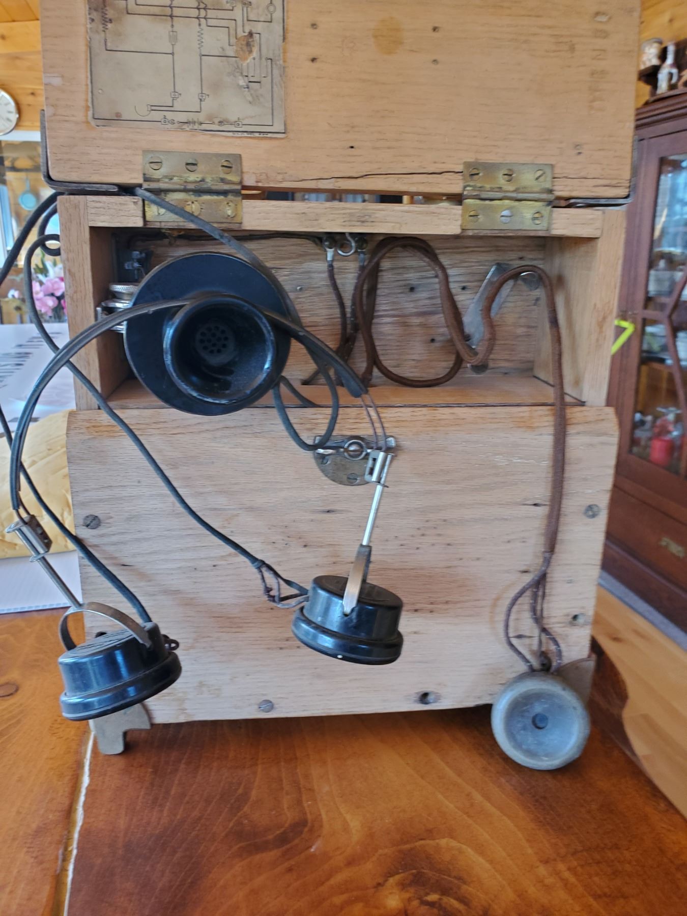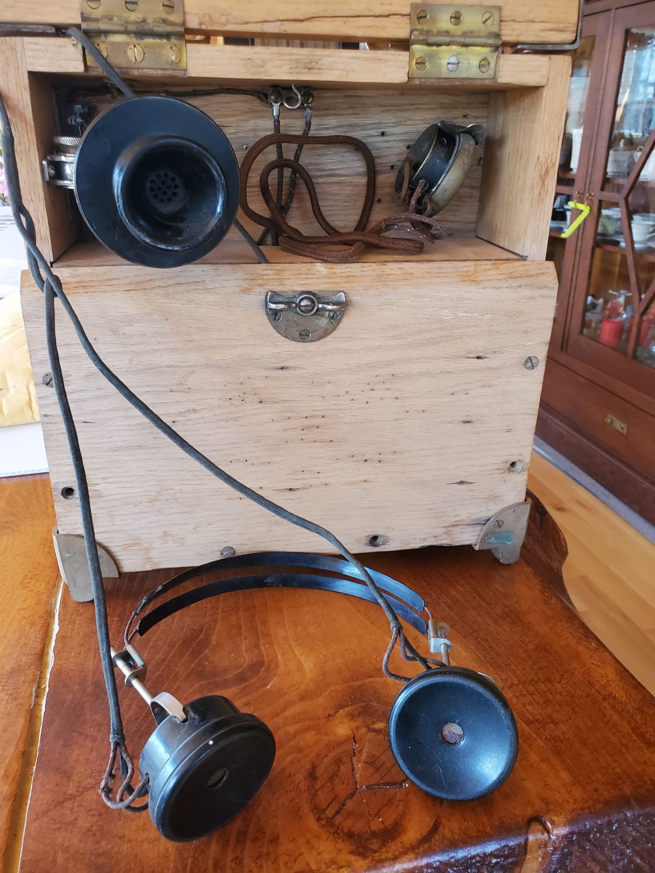 Telephone in oak cabinet Northern Electric used by Trainsmen - direct connect to line wires