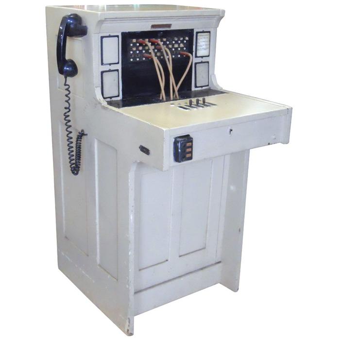Telephone switchboard, Stromberg Carlson w/tag for Graybar Inter-Phones, likely from a Graybar office bldg, painted quartersawn oak, c.1930's, VG cond, 42"H x 21"W x 30"D.