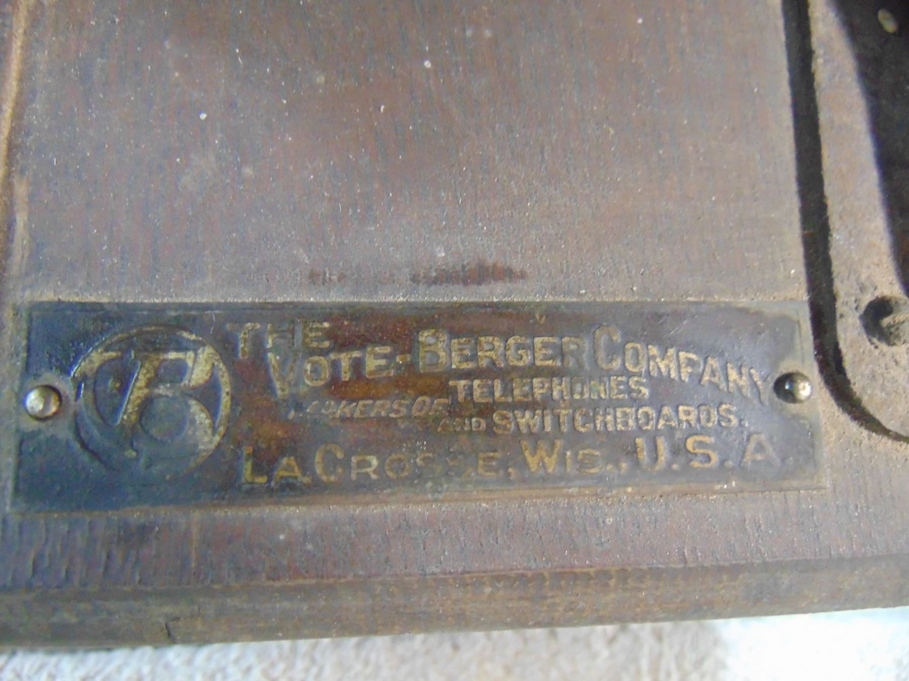 Early wall phone; mfg by Vote-Berber Co.; 4 bar generator; circa 1920
