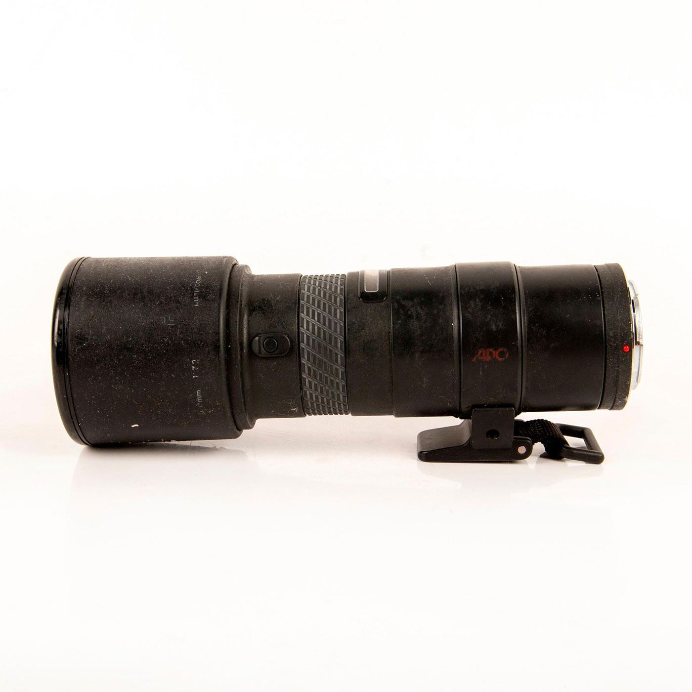 Unknown maker possibly a 200 or 400mm multi coated lens. Wording is worn and we are unable to read the details on the lens. Cameras and Photographica