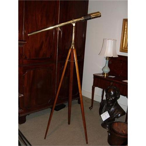 A brass telescope mounted on a surveyor's tripod, signed "J.C. De W. Reade, from his father, September 25, 1893."