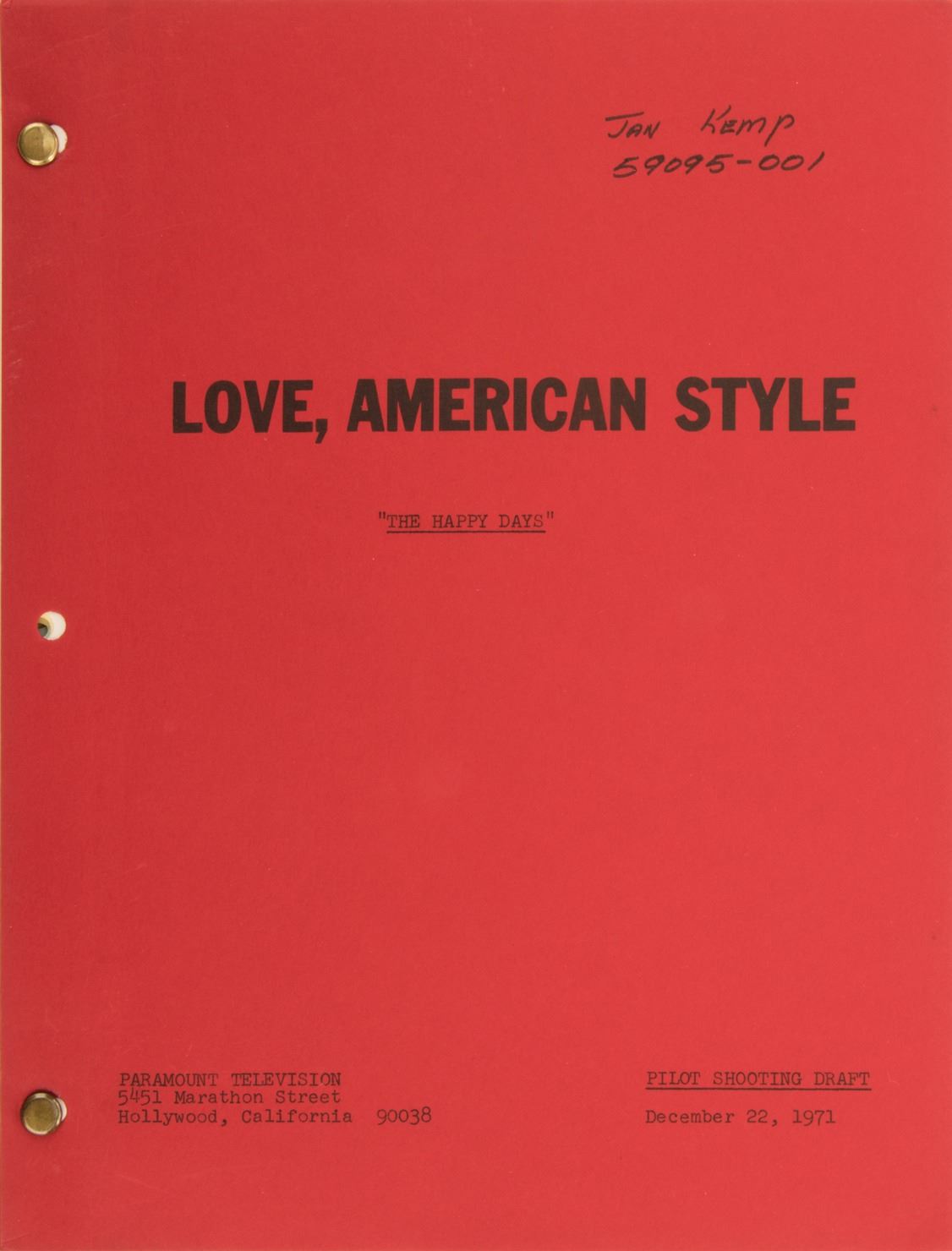 108. Television series of the 1970s (35+) episode shooting scripts.(Various, 1970-1979) Vintage (35+) original episode shooting scripts for series from the 1970s. Includes Fantasy Island, Love American Style, The Mod Squad, Charlie's Angels, Marcus Welby, M.D., The Tony Randall Show, O'Hara, United States Treasury, Owen Marshall, Counselor at Law, Nanny and the Professor, Make Room for Granddaddy, The Paul Lynde Show, The Courtship of Eddie's Father, The Carol Burnett Show, Eight is Enough, The Danny Thomas Special, Kojak, McCloud, The Incredible Hulk, Welcome Back, Kotter, Maude, Rhoda, The Sonny and Cher Show, and the Sonny Comedy Hour. Presumed complete. Comprised of white, and various color "Rainbow" correction pages. A few include call sheets, schedules, etc. General signs of on-set use, good to very good condition overall. $500 - $700