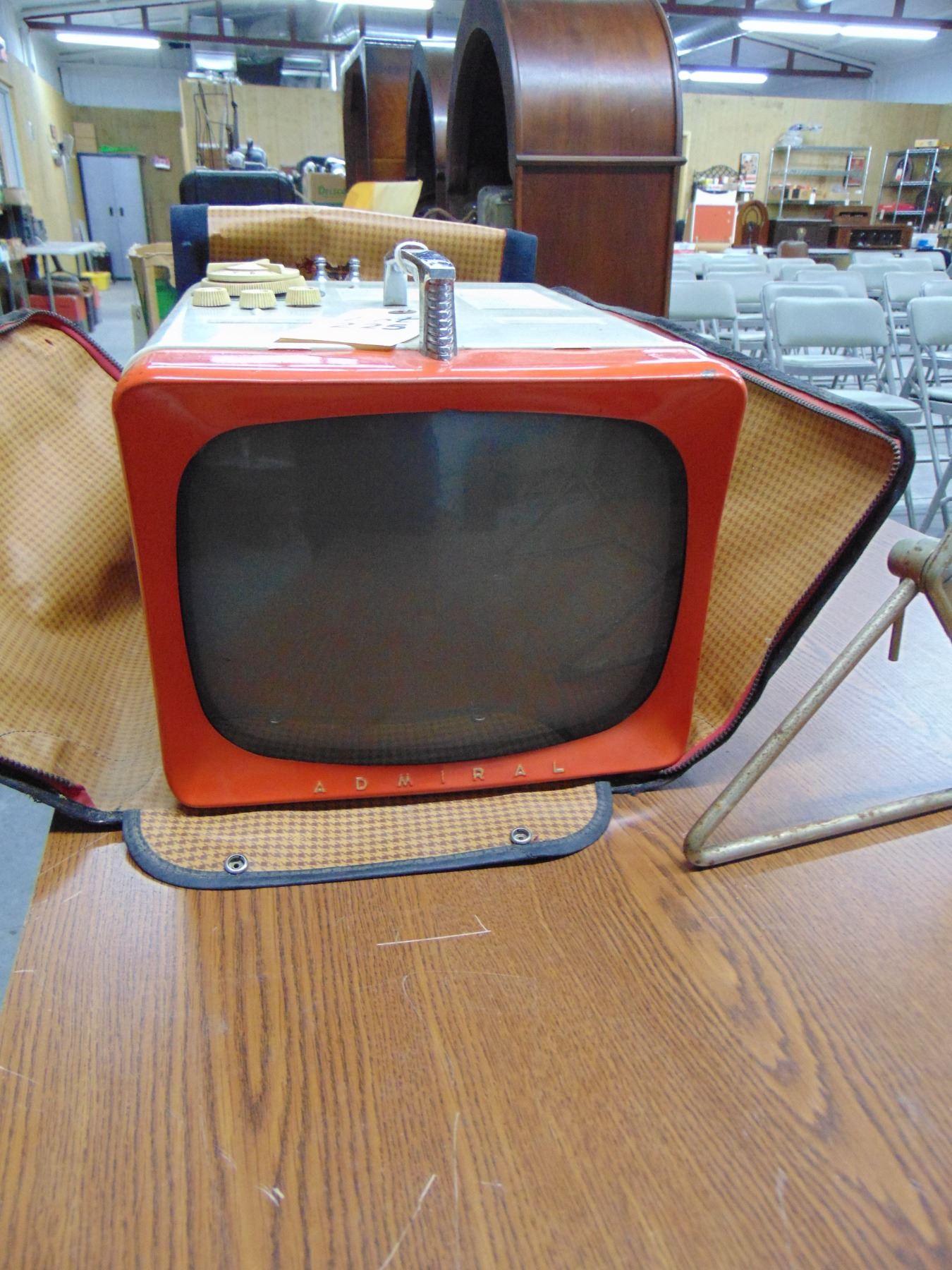 Admiral portable tv; circa 1960’s; model T102; with stand and case; nice