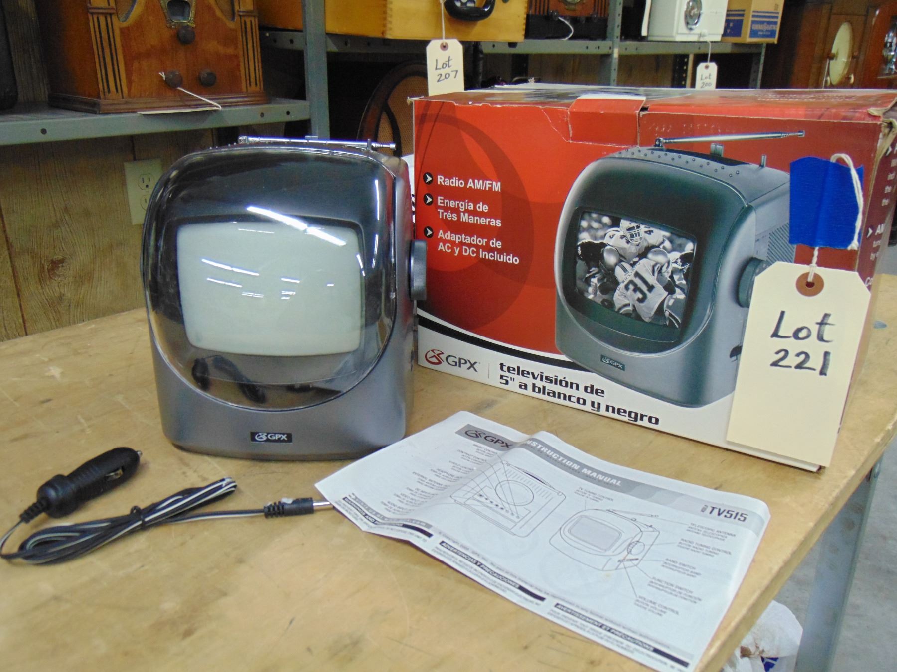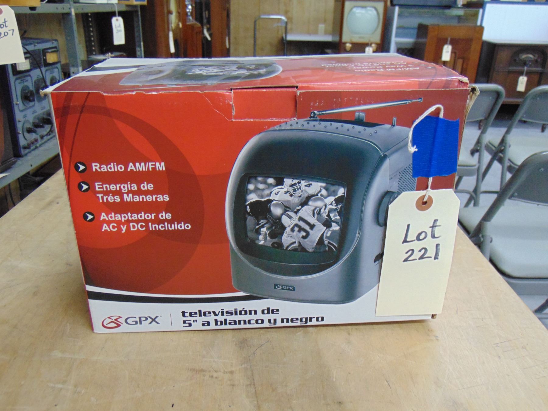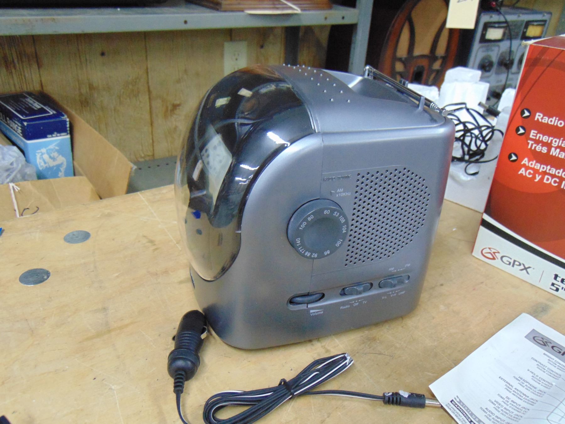 GPX 5" black and white television; with AM/FM; model TV515; in original box; nice