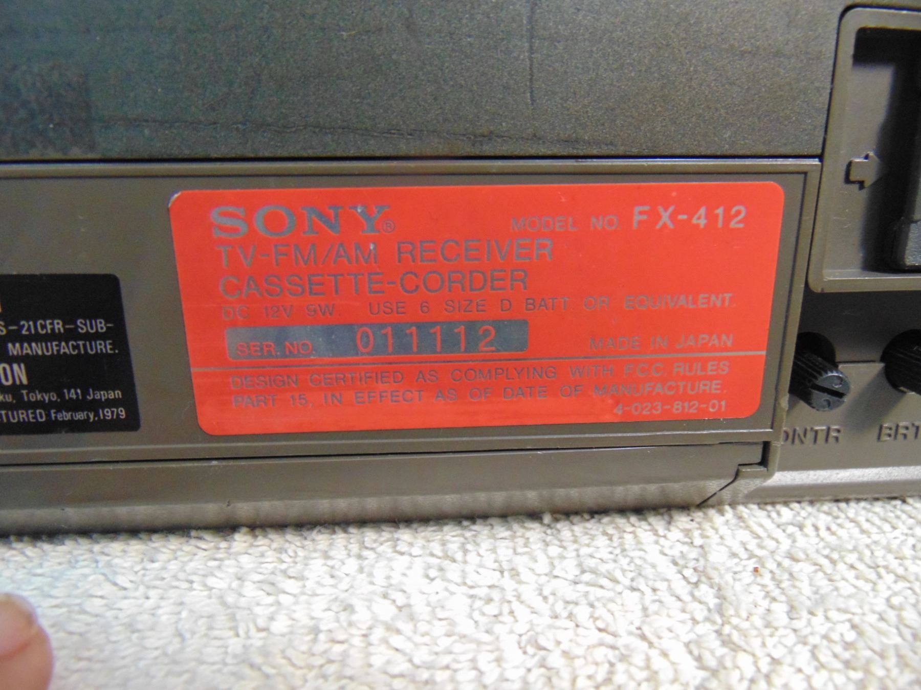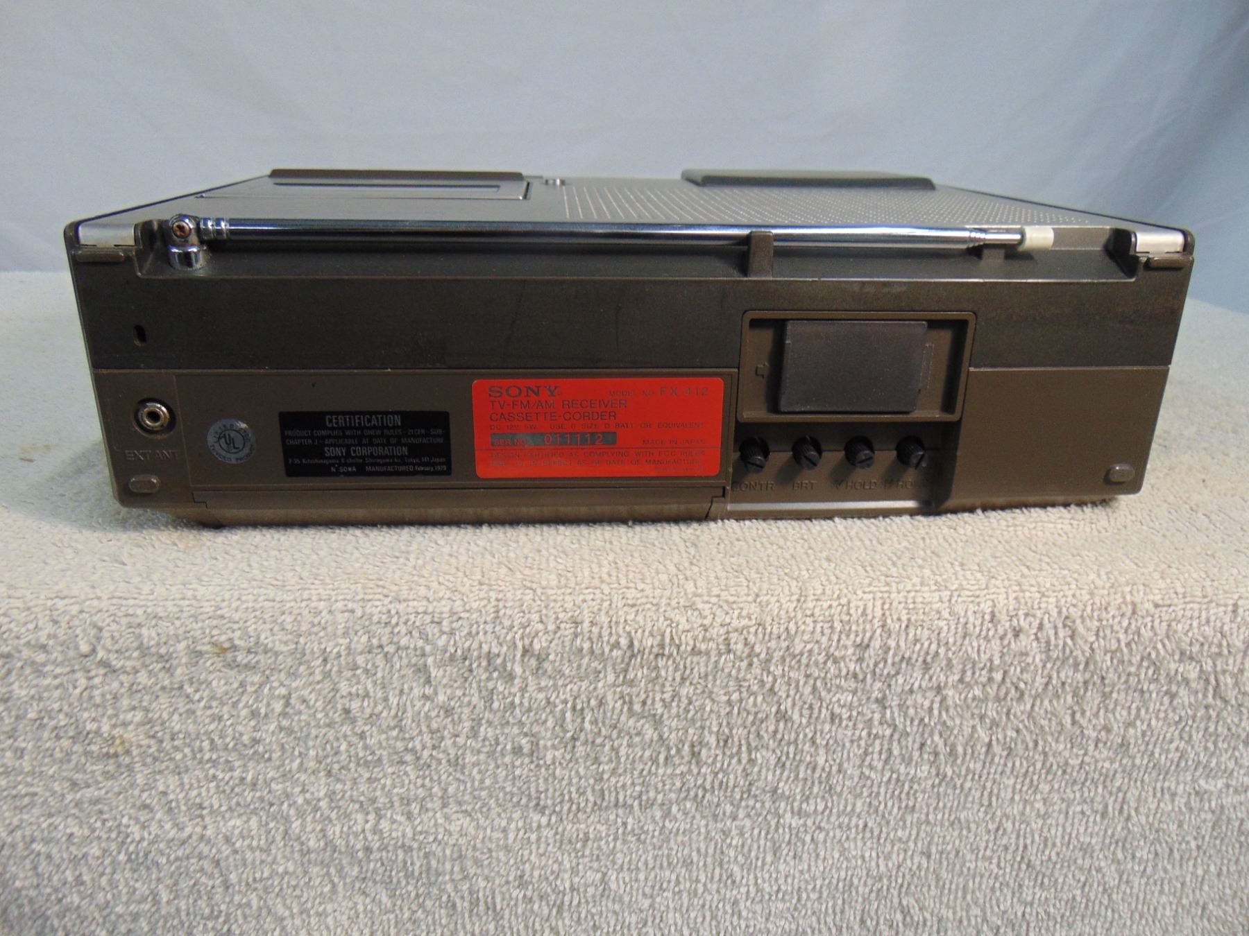 Sony miniature tv; AM/FM; model FX-412; includes cassette recorder