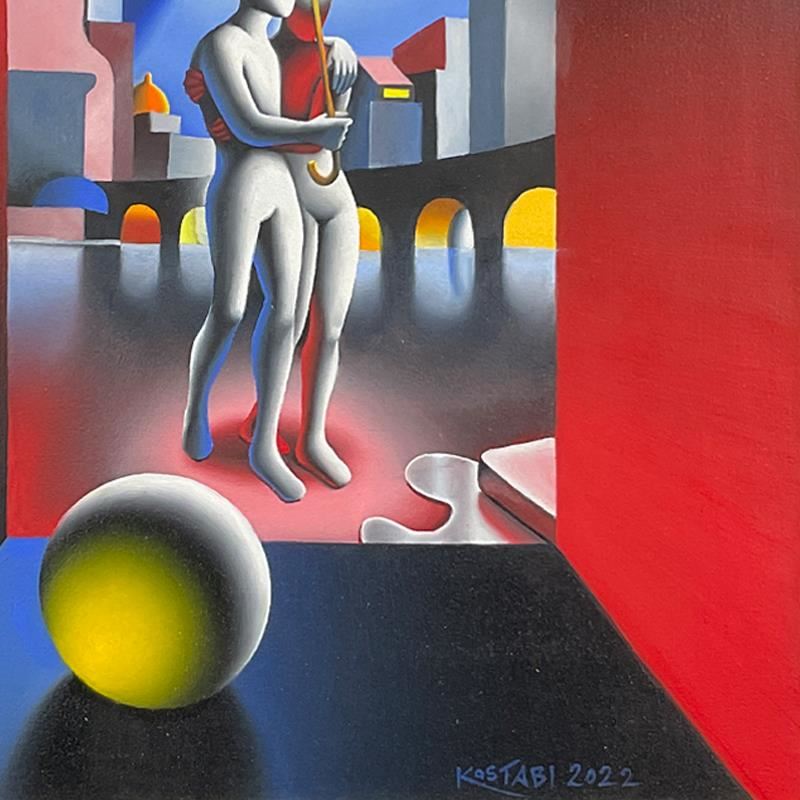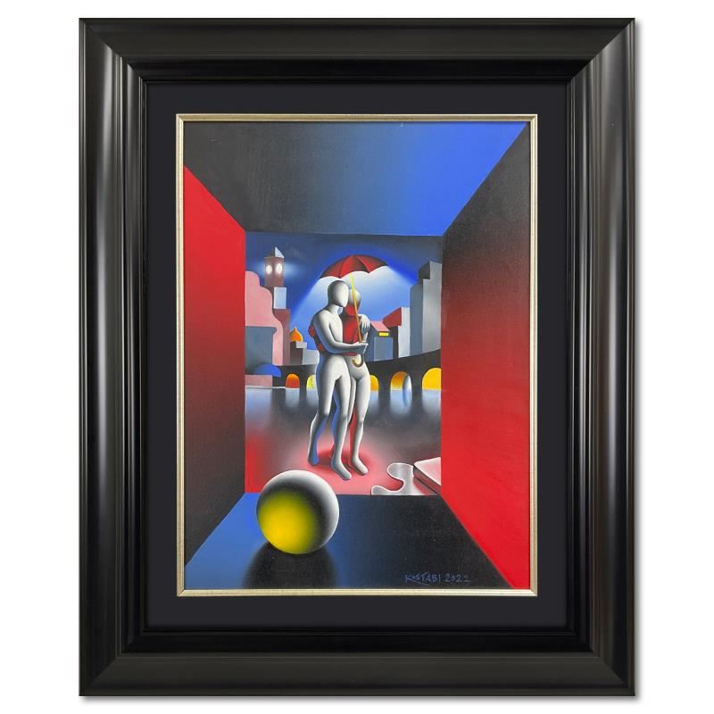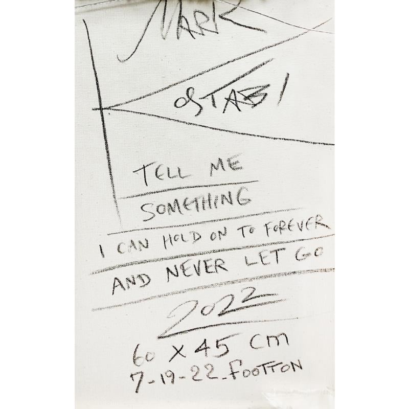 Tell Me Something... by Kostabi Original. All available information is listed in the description and shown in the photo. "Tell Me Something..." is an original oil painting on canvas by Mark Kostabi, hand signed by the artist. This piece comes framed. Includes Certificate of Authenticity. Measures approx. 28" x 34" (frame), 17" x 23" (image).