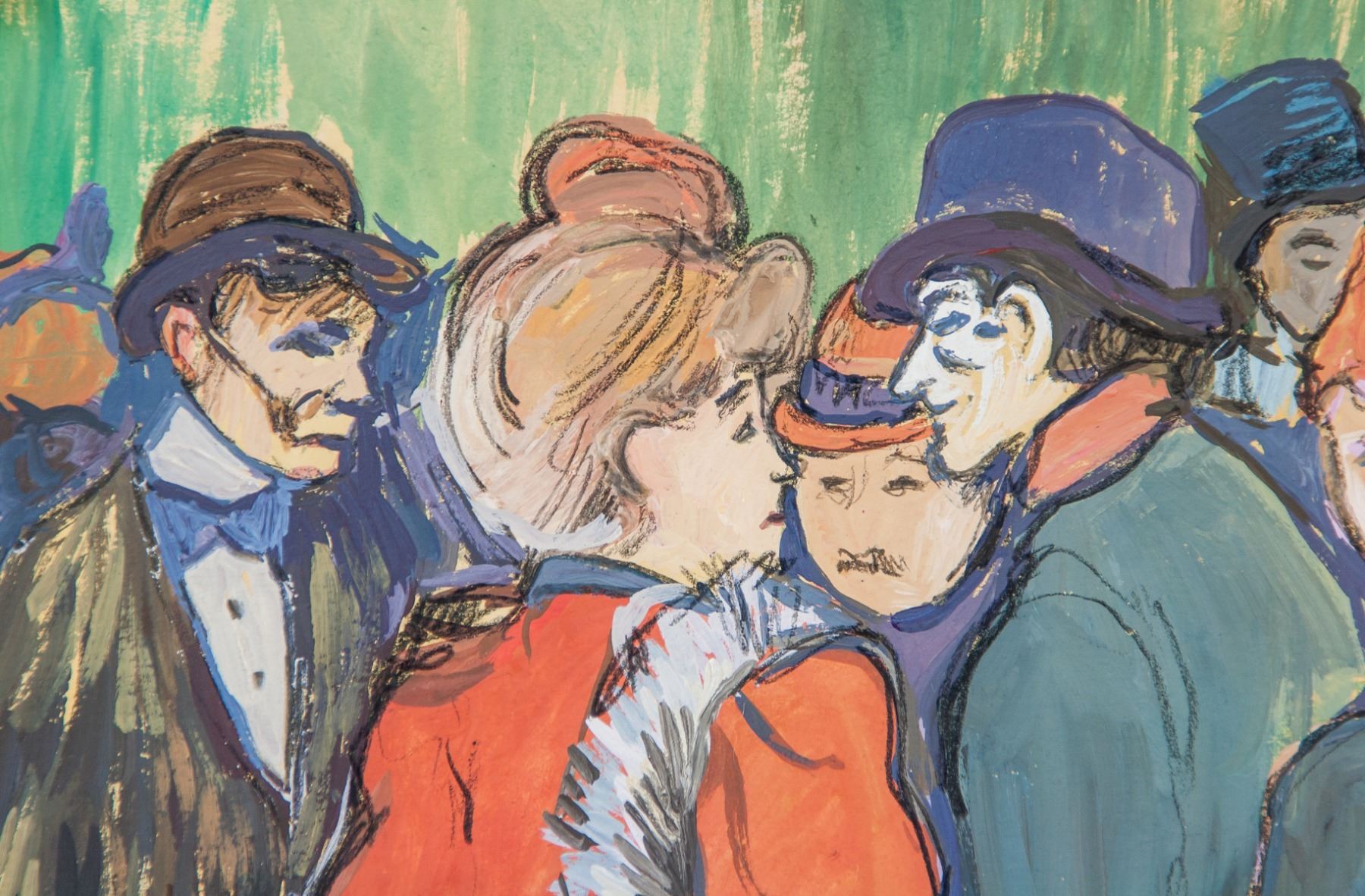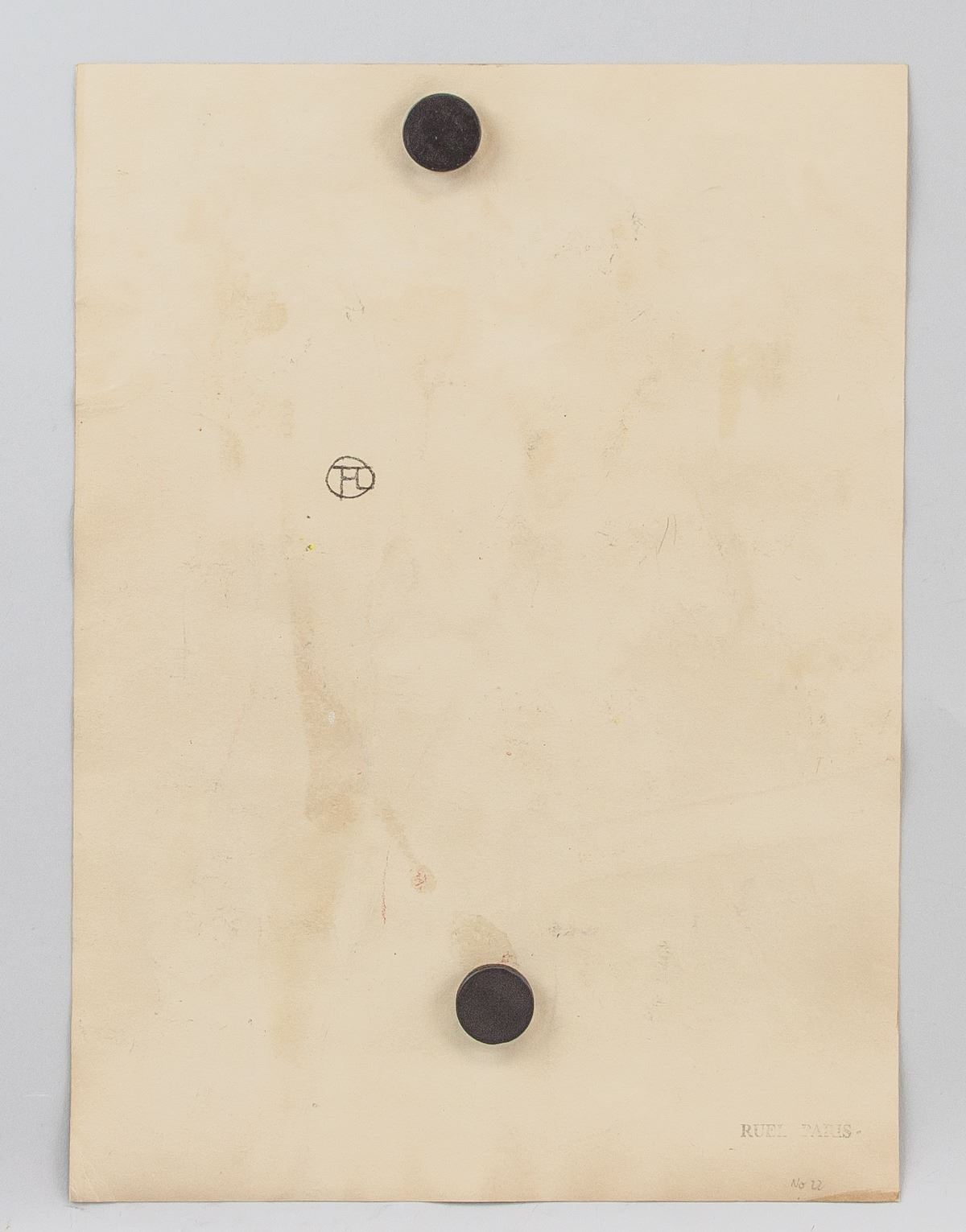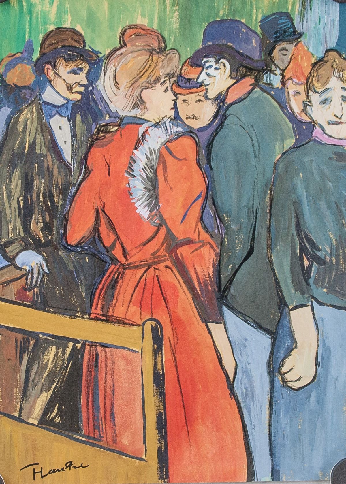 Ink and tempera on paper, French Post-Impressionist and Art Nouveau School, featuring saloon scene, signed T-Lautrec possible signature of Henri-Toulouse Lautrec on the lower left corner and inscribed TL on verso, and stamped RUEL Paris and inscribed No. 22 on verso, 27.8 x 20.3 cm (10.9 x 8 inches). PROVENANCE: Private American estate.