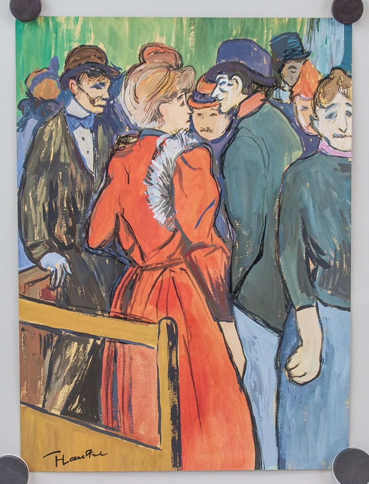 Renowned Post-Impressionist painter, lithographer, and art nouveau illustrator Henri de Toulouse-Lautrec (Fnrech, 1864-1901) is famous for his depictions of French fin de siecle urban life. Working in his characteristic linear style, Lautrec frequently portrayed scenes from brothels and cabaret clubs, including the Moulin Rouge, where he had a seat reserved after producing a series of promotional posters for the club’s opening in 1888. Lautrec was influenced by the artists Edgar Degas and Edouard Manet, who shared with them a keen interest in the observation of social culture.