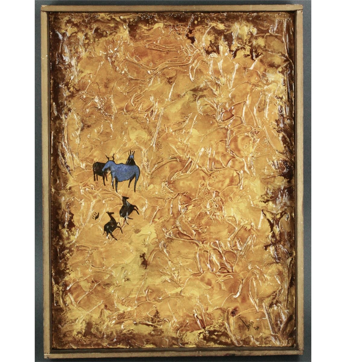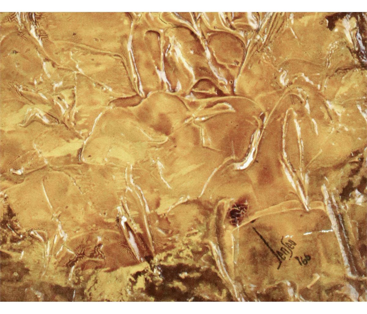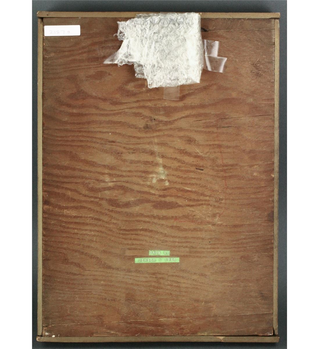 Abstract painting; tempera on panel with frame; signed Jensen and dated 1966; 42 cm x 31 cm